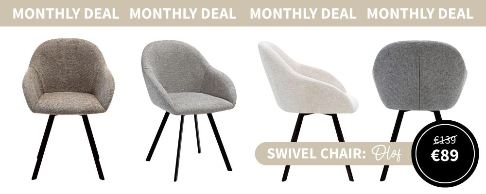 Every month at KICK Collection, we highlight one of our favorite furniture pieces. This month, it’s the turn of a true must-have: Swivel Chair Olof.This stylish and comfortable swivel chair is now temporarily available for just €89 (instead of €139). That means you save €50. The perfect opportunity to give your interior a stylish upgrade!
