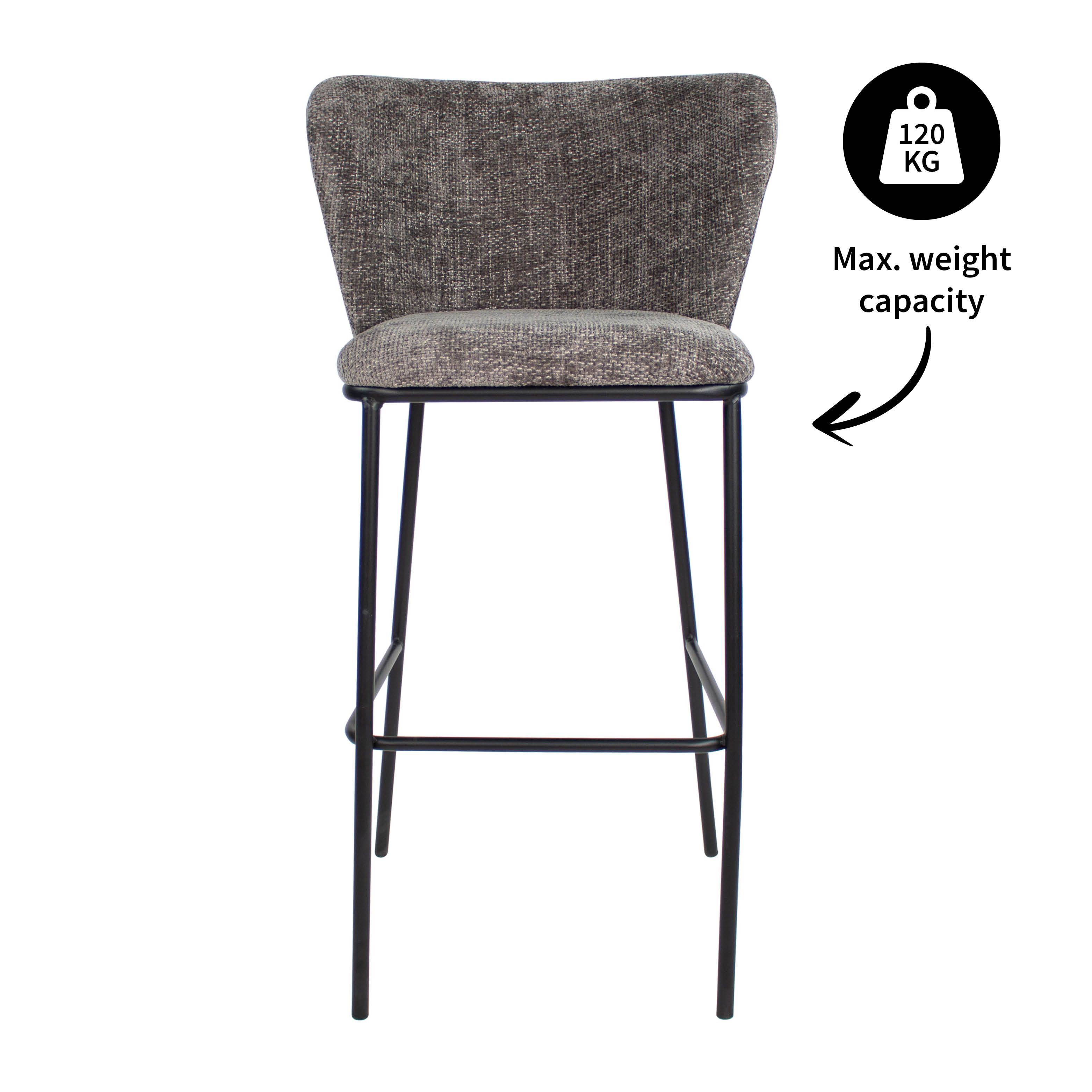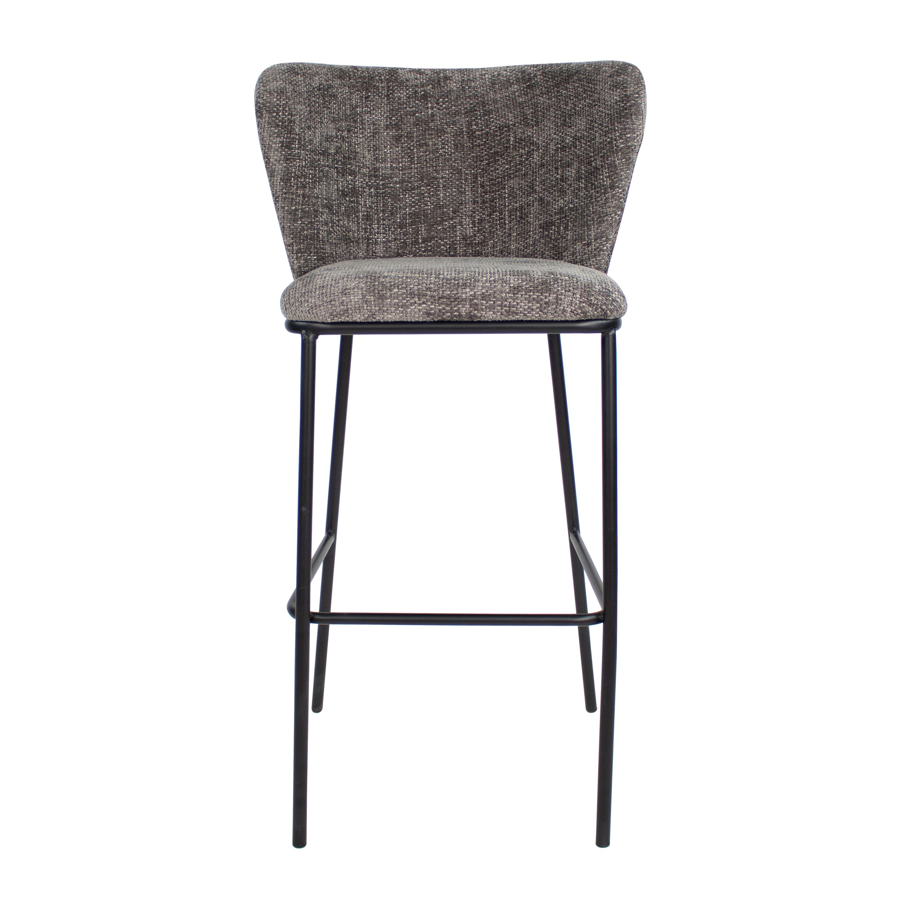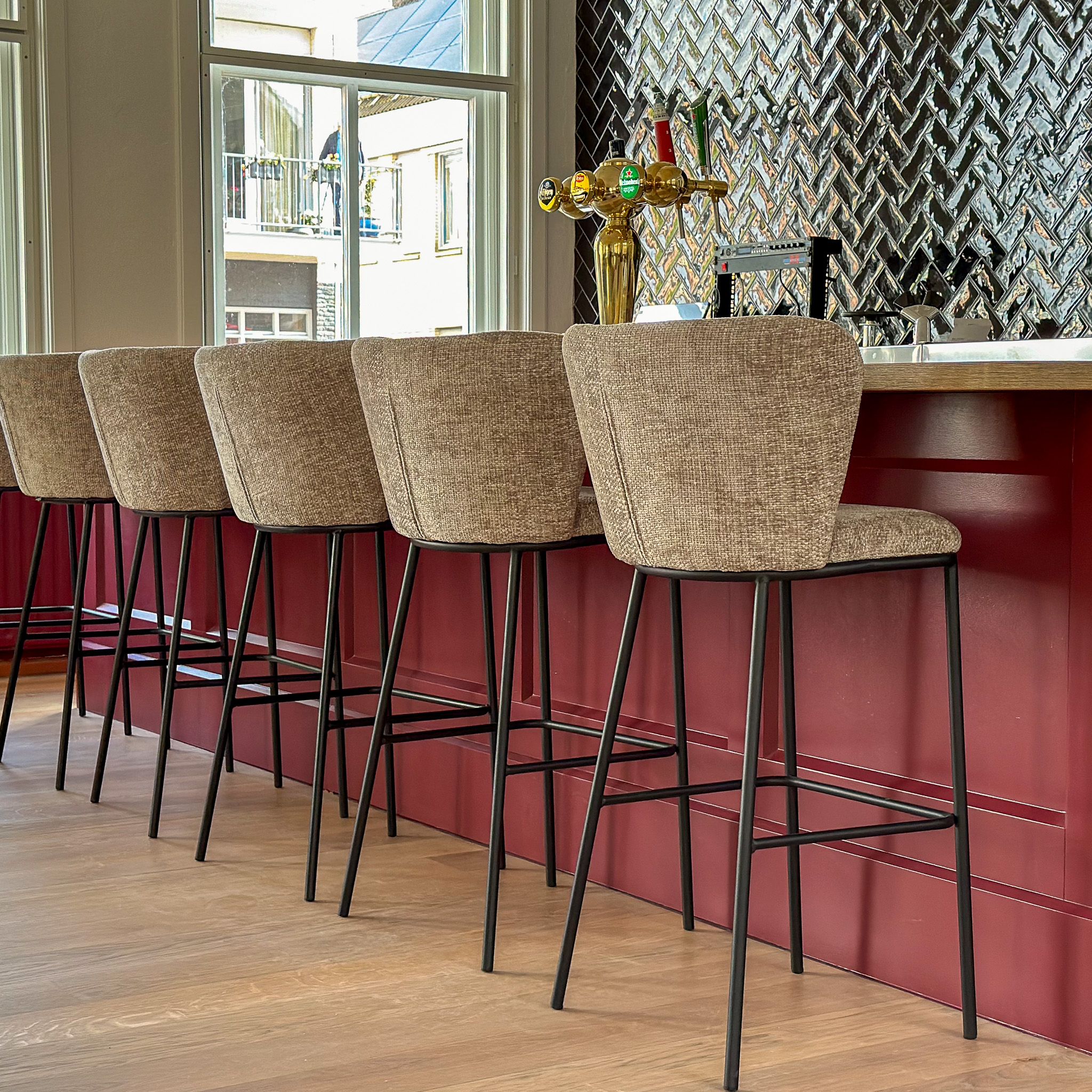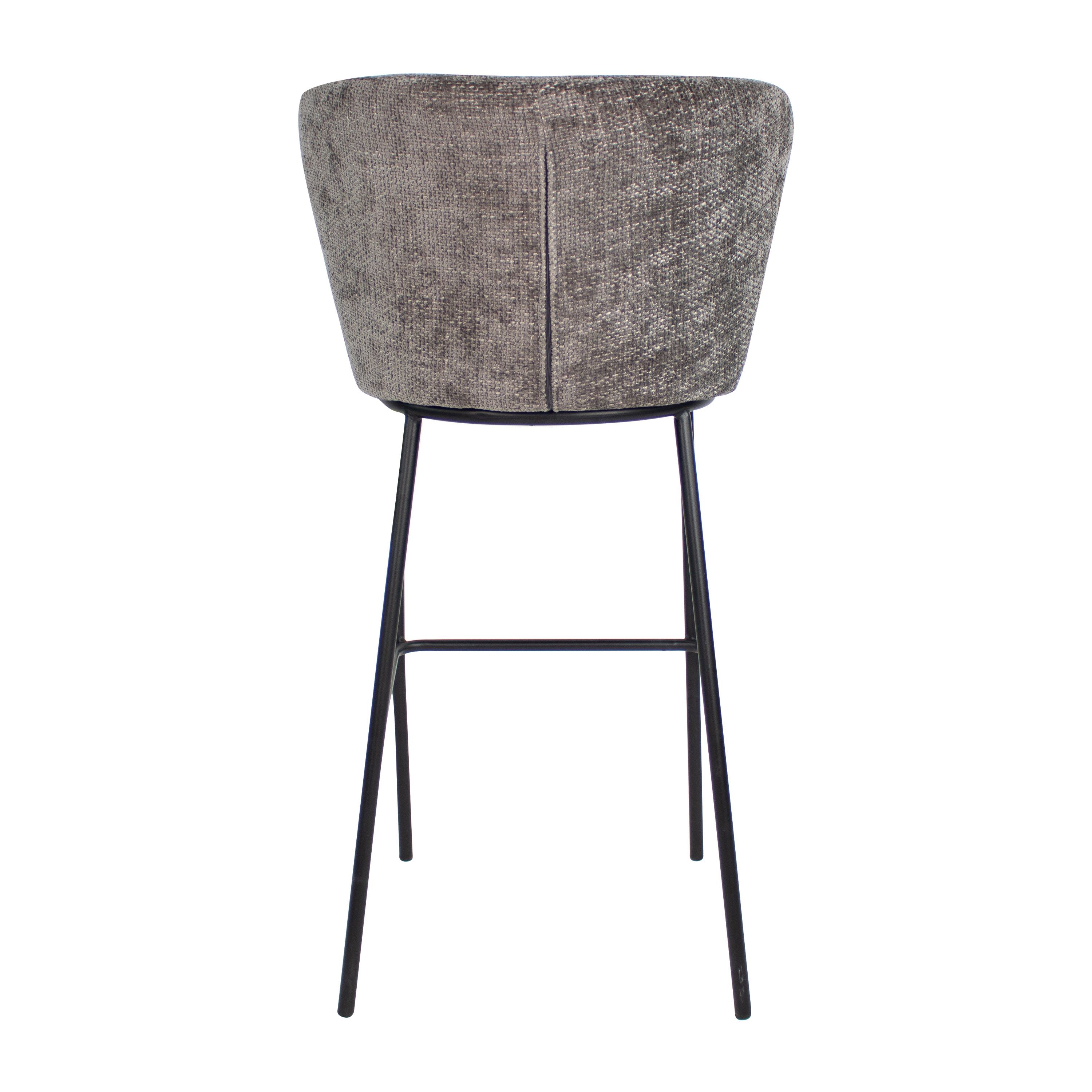 Bar stool Bo is a contemporary and comfortable choice for any bar or kitchen island. Upholstered in a soft chenille fabric, this stool not only offers a soft seating experience but also adds a touch of elegance to the space. The stool features a sturdy metal frame with footrest and a wide backrest which ensures optimal seating comfort.