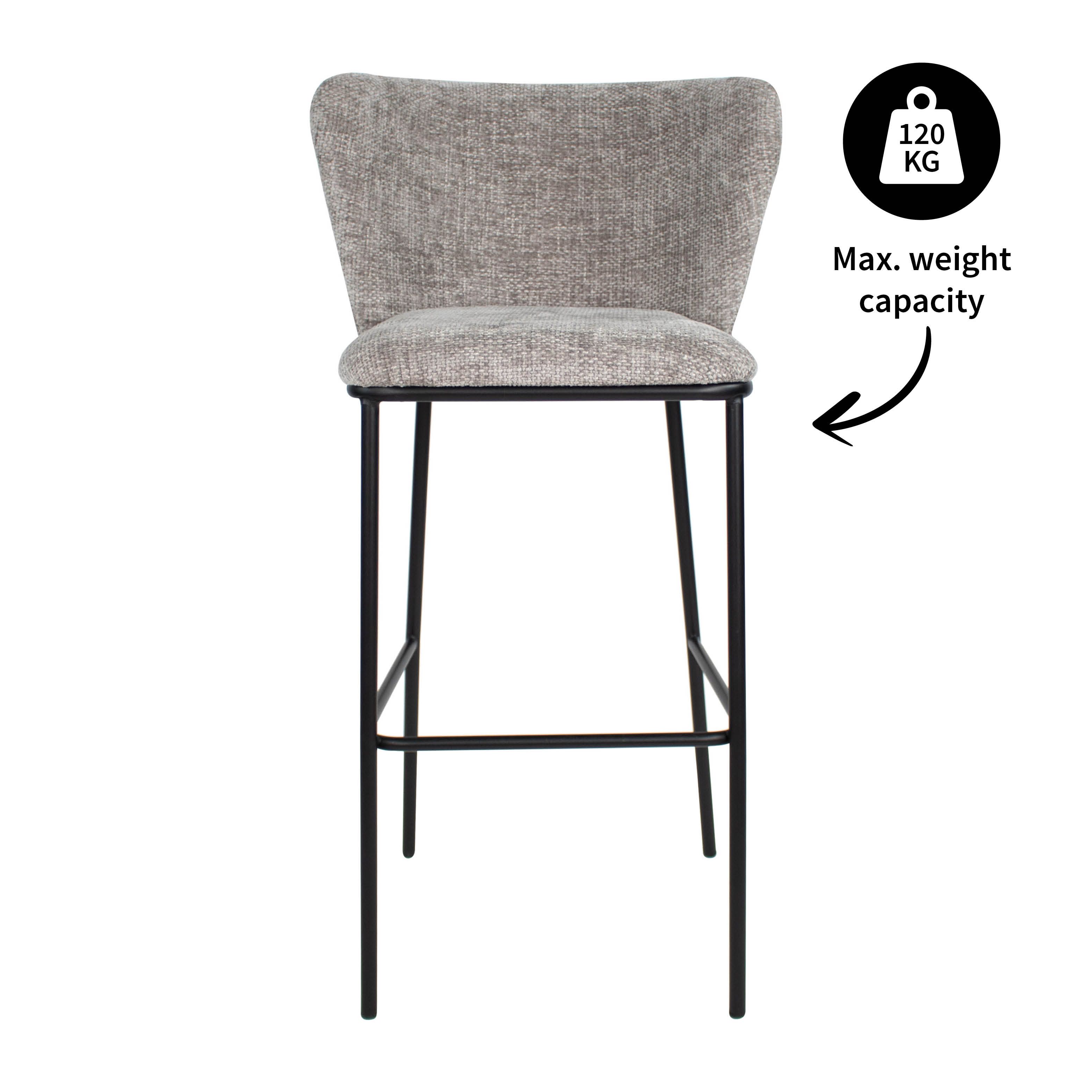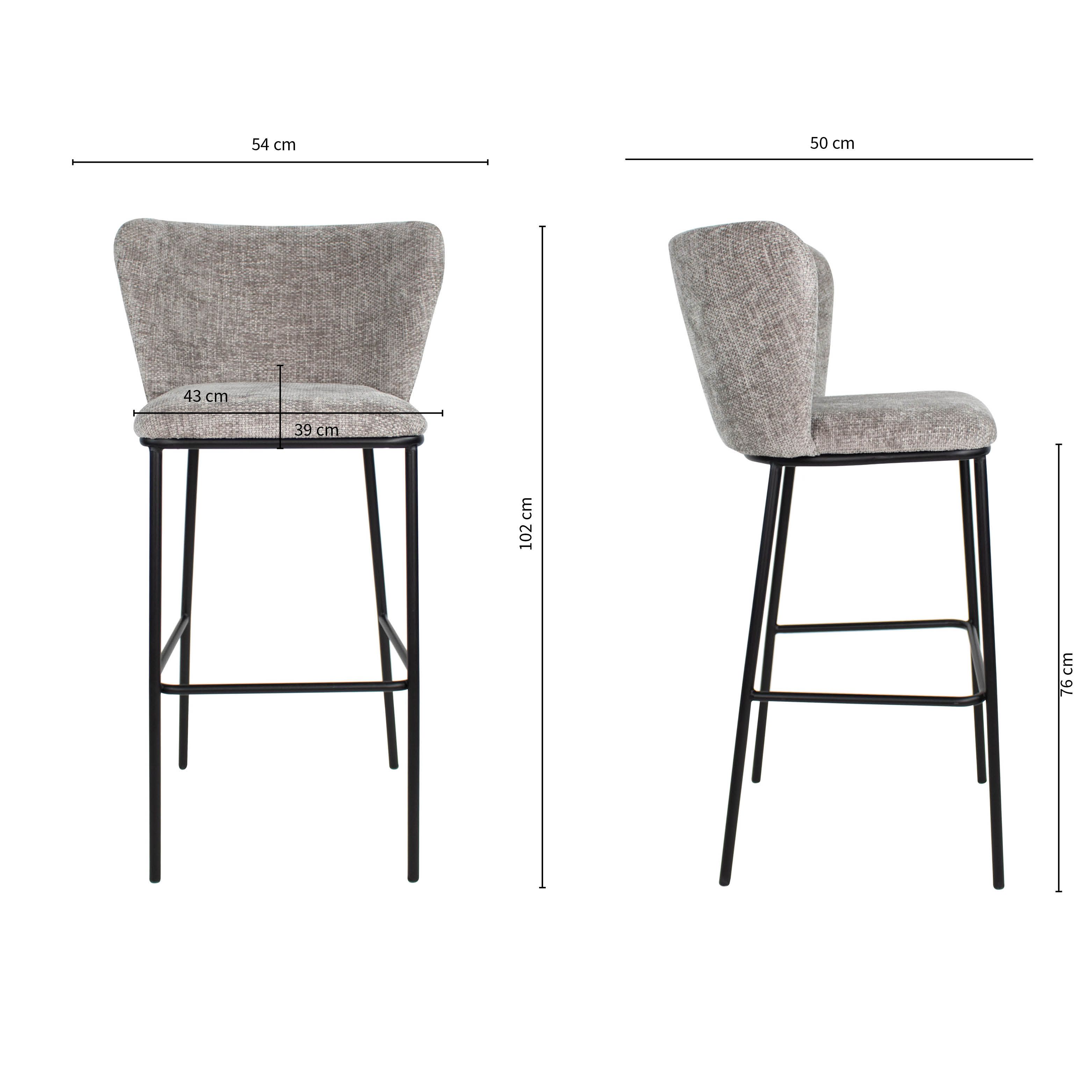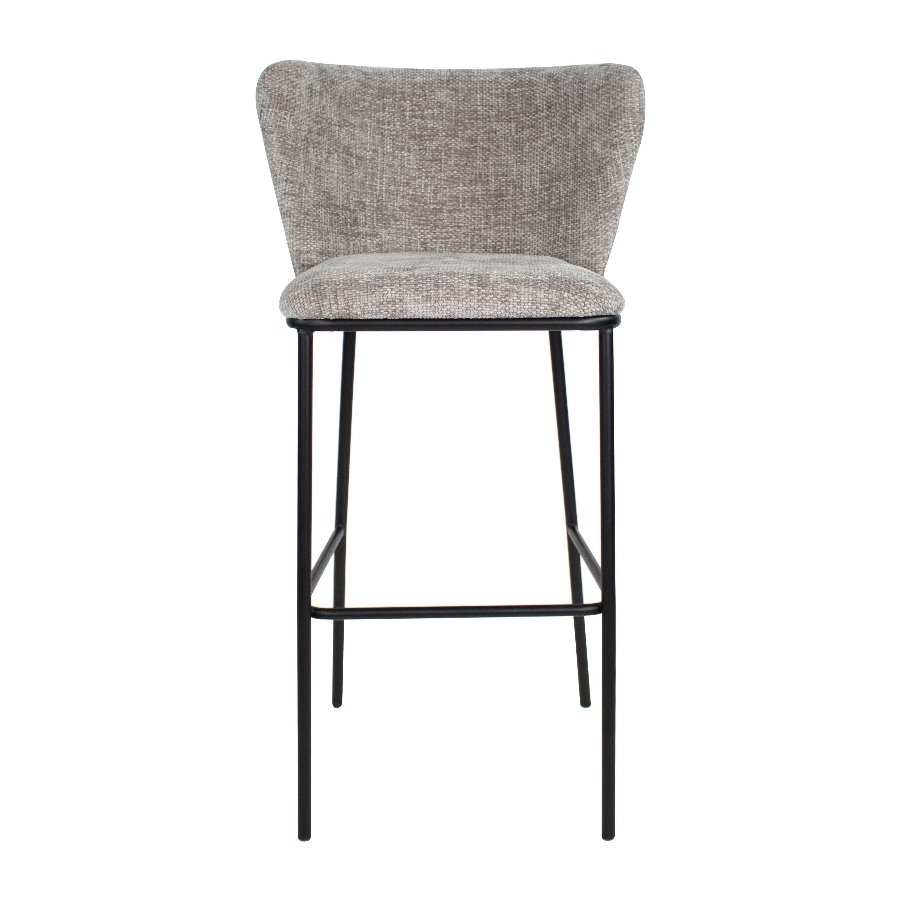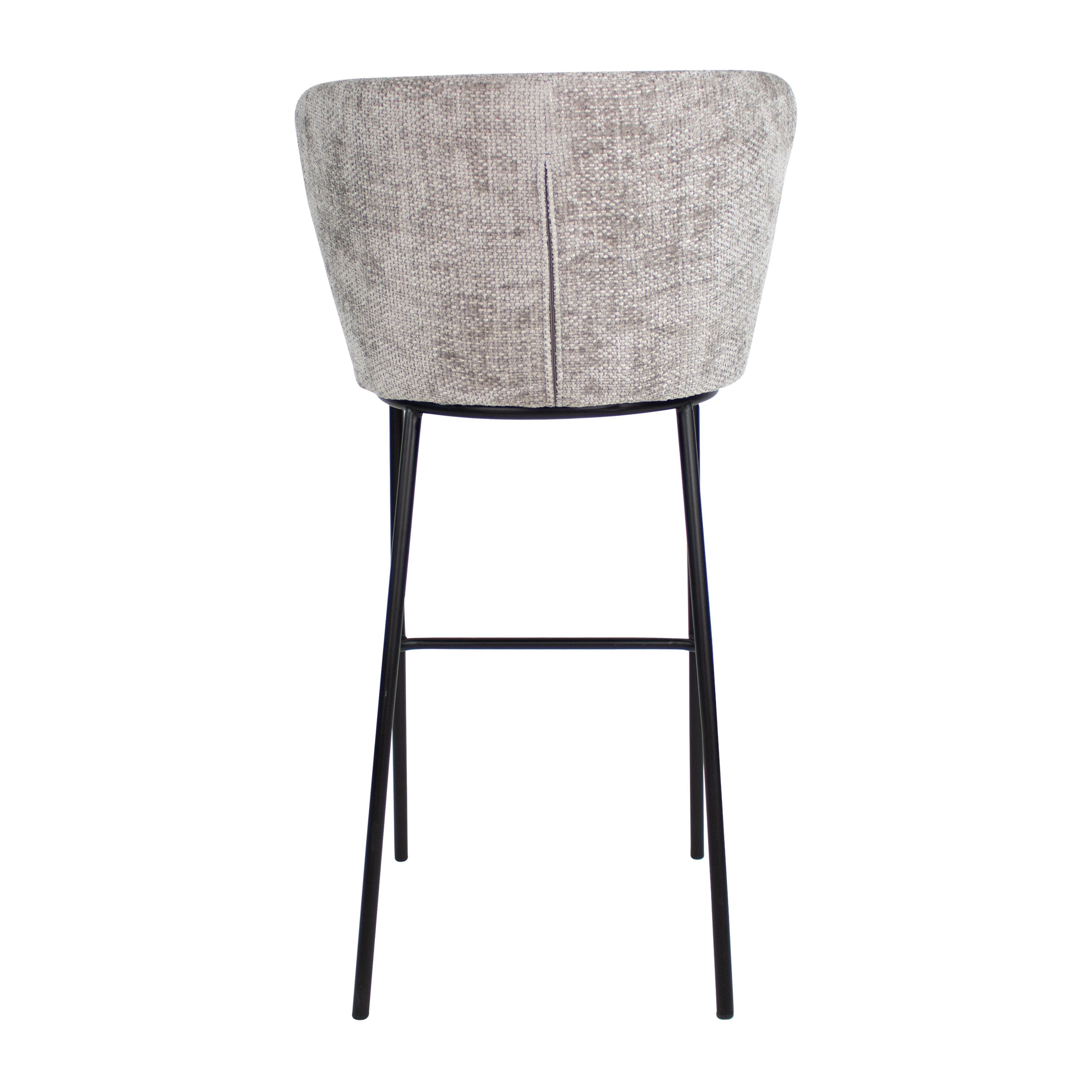 Bar stool Bo is a contemporary and comfortable choice for any bar or kitchen island. Upholstered in a soft chenille fabric, this stool not only offers a soft seating experience but also adds a touch of elegance to the space. The stool features a sturdy metal frame with footrest and a wide backrest which ensures optimal seating comfort.