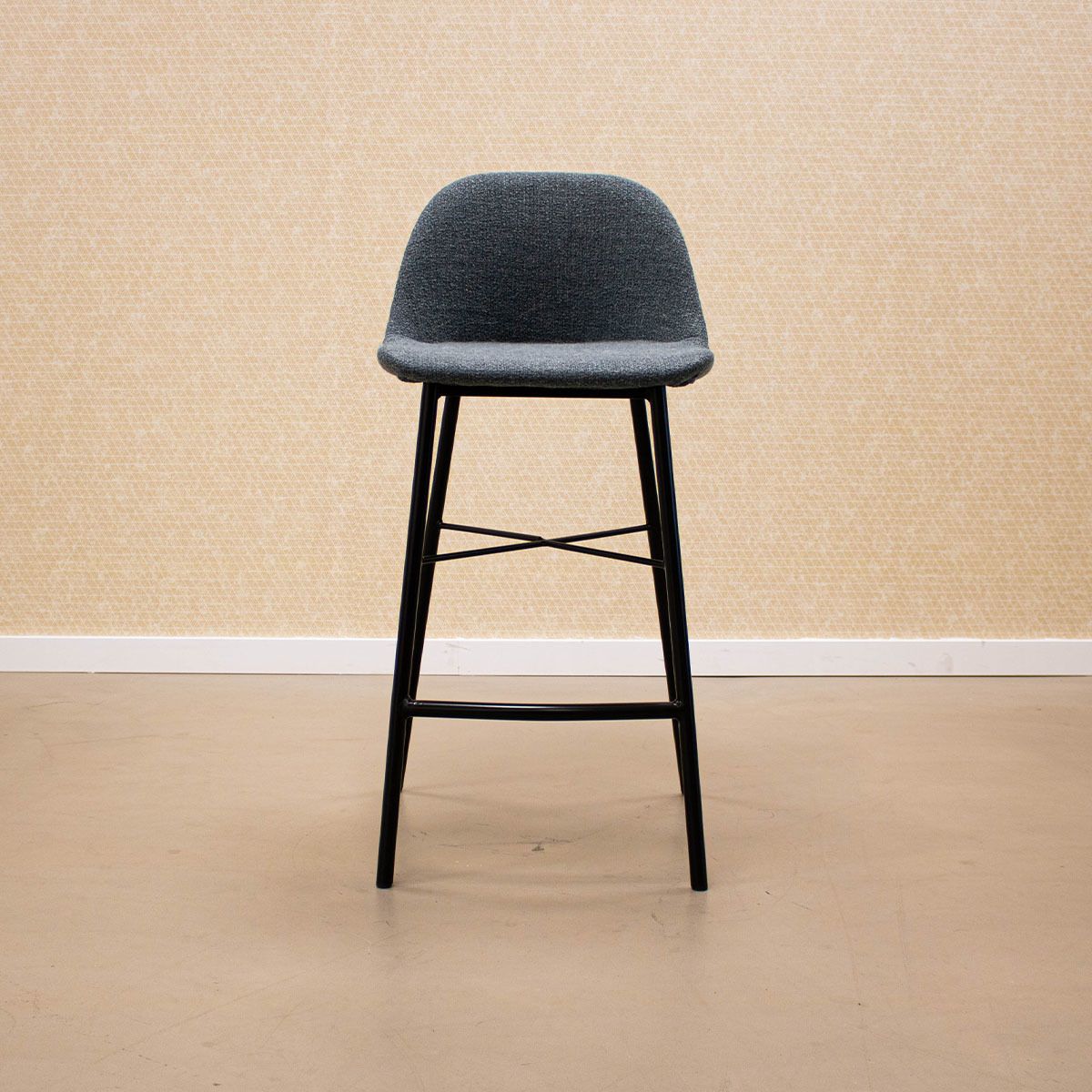 THIS IS JADE! This modern barstool is our trusty Jeff in a cool jacket. With its comfy backrest and plump seat, it's ideal for at the breakfast/drinks bar. The seat is upholstered with a cotton texture fabric and in combination with the black steel frame it gives your interior the ambience you are looking for. The JADE bar stool is available in a range of colours, so mix & match to your heart's content to create beautiful results!