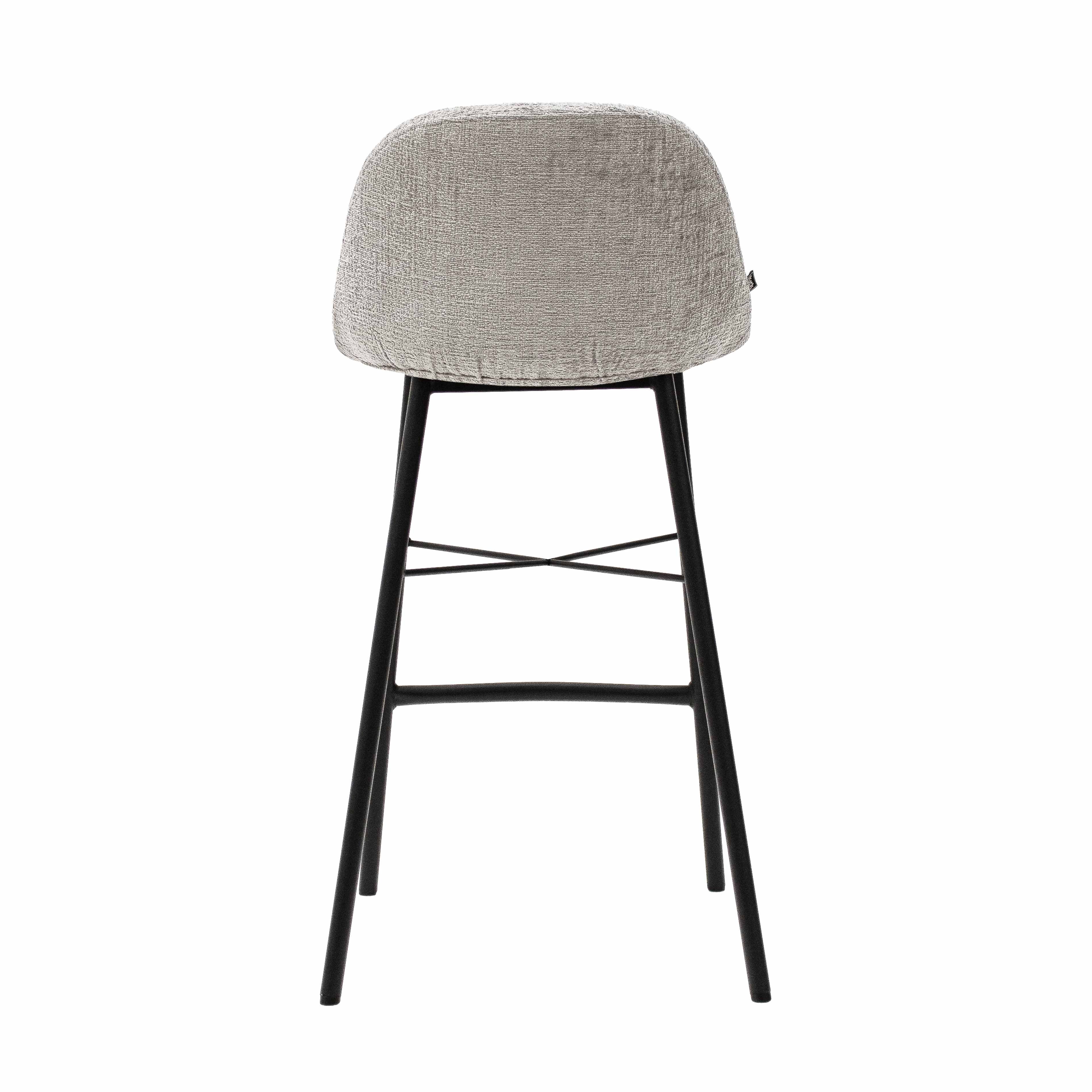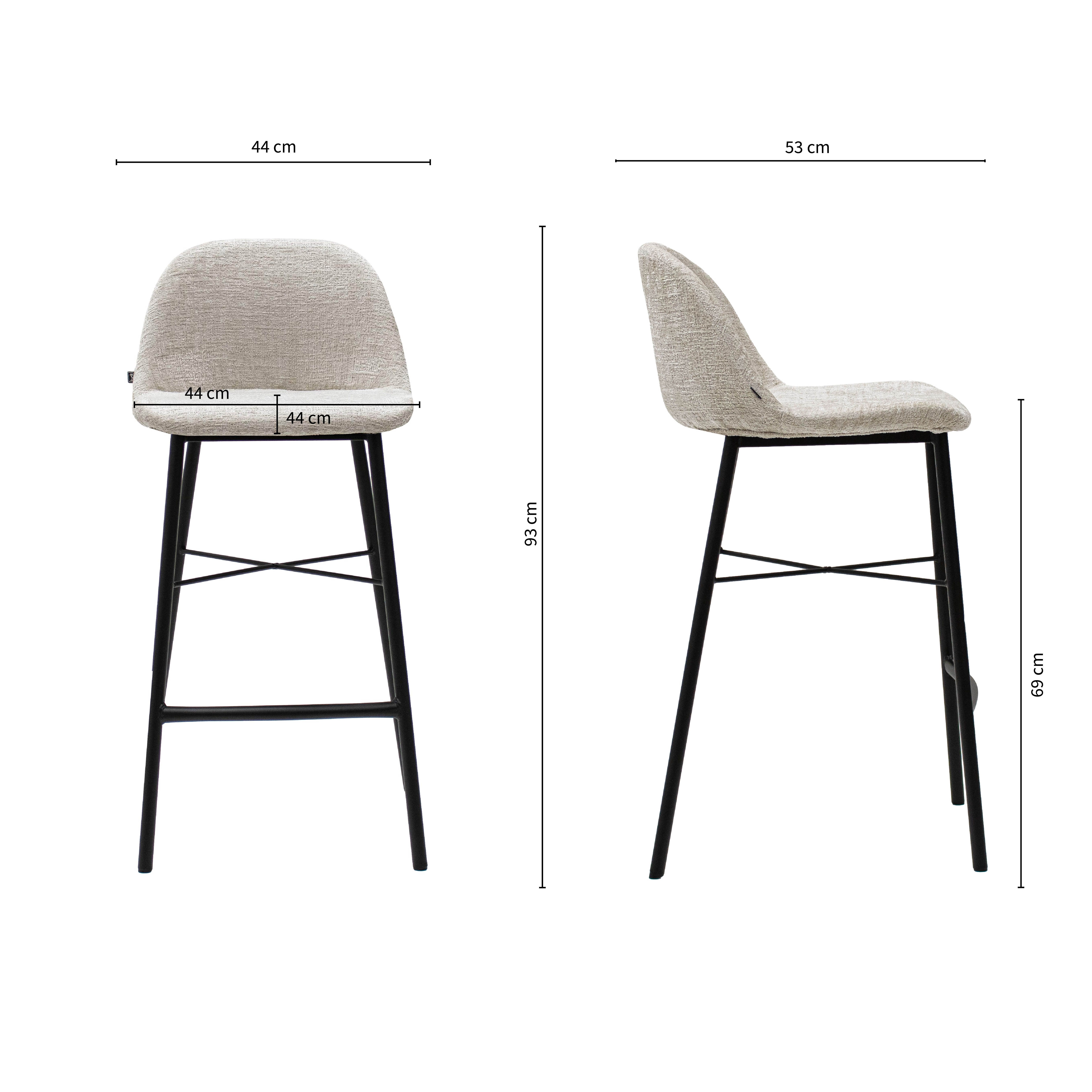 Meet bar stool Joel! This modern bar stool is our old familiar Jeff in a new look! The comfortable back and fine seat make it perfect for breakfast or a nice drink at your kitchen island/bar. The shell is upholstered with a soft texture fabric which provides a chic touch, combined with the black metal frame gives it the look you are looking for! Joel is available in a range of cool colors so you can effortlessly combine it with the rest of your interior.