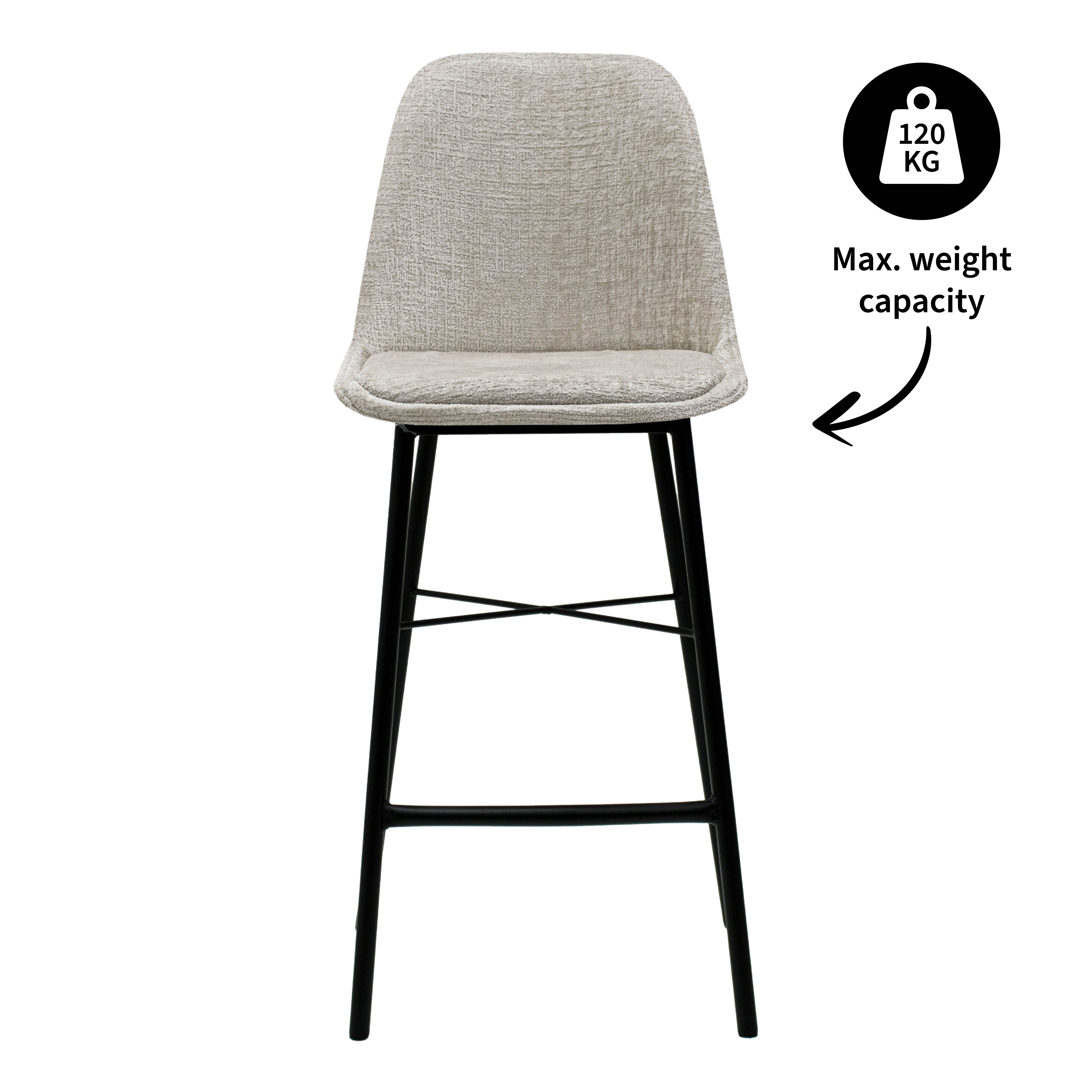 Meet bar stool Lara! This modern stool exudes comfort and style. The well-positioned high backrest combined with the comfortable seat make it a treat to sit at the bar! Lara is upholstered in a fine texture fabric which gives the stool a chic look. The shell rests on a sturdy, black metal frame. Barstool Lara is available in 2 fine colors.