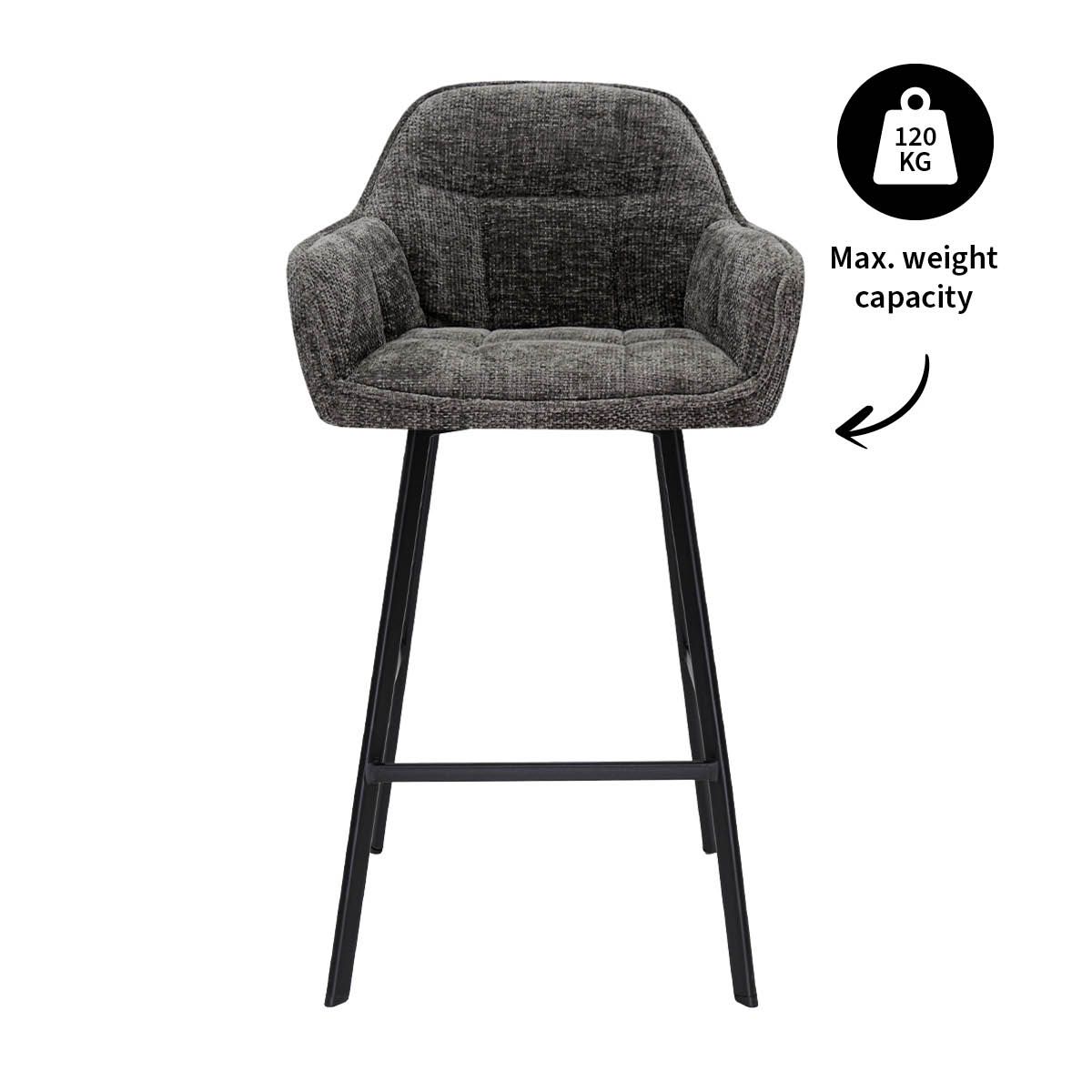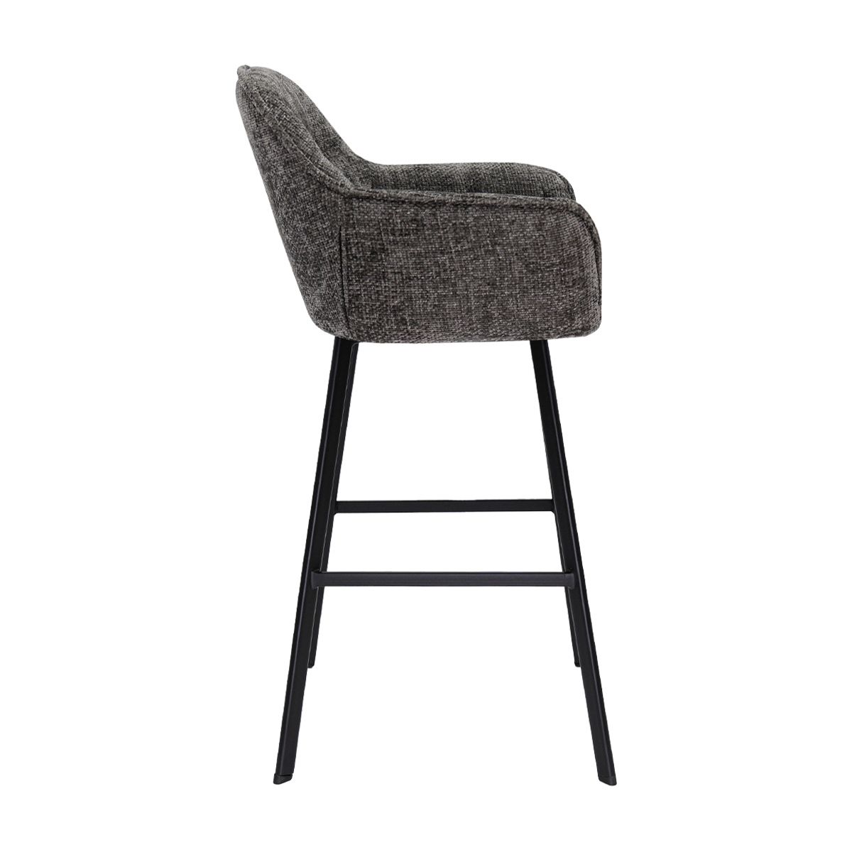 Based on the design of our popular LUC dining chair, the LYNN bar stool effortlessly brings familiar comfort and modern luxury to bar and island heights. Thanks to its comfortable seat with coarse chenille fabric, LYNN brings warmth and elegance to any space. The soft curves of the seat provide ergonomic seating comfort, ideal for long evenings of drinks or cozy moments at the kitchen counter.