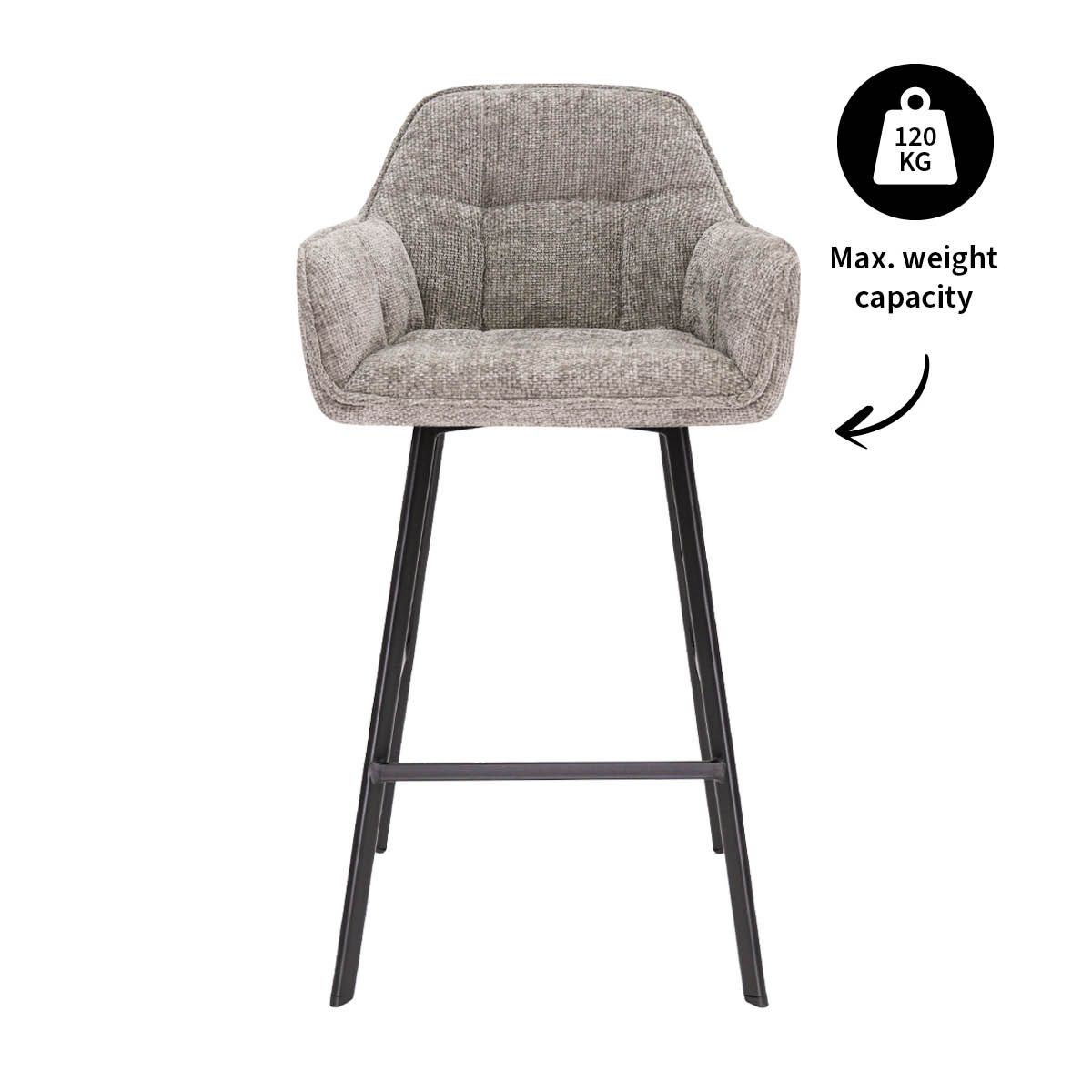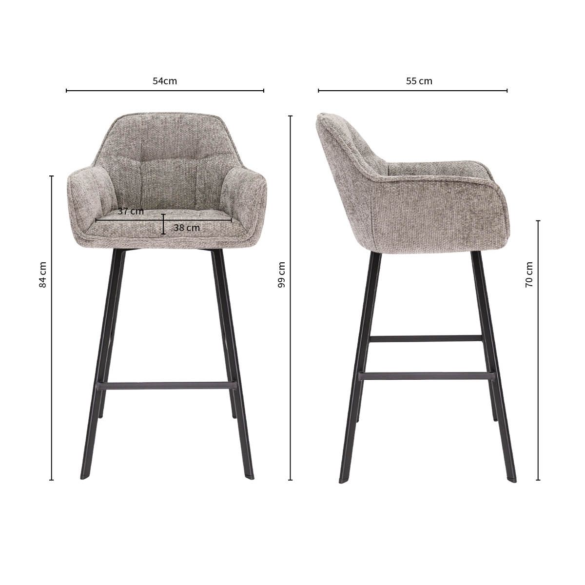 Based on the design of our popular LUC dining chair, the LYNN bar stool effortlessly brings familiar comfort and modern luxury to bar and island heights. Thanks to its comfortable seat with coarse chenille fabric, LYNN brings warmth and elegance to any space. The soft curves of the seat provide ergonomic seating comfort, ideal for long evenings of drinks or cozy moments at the kitchen counter.
