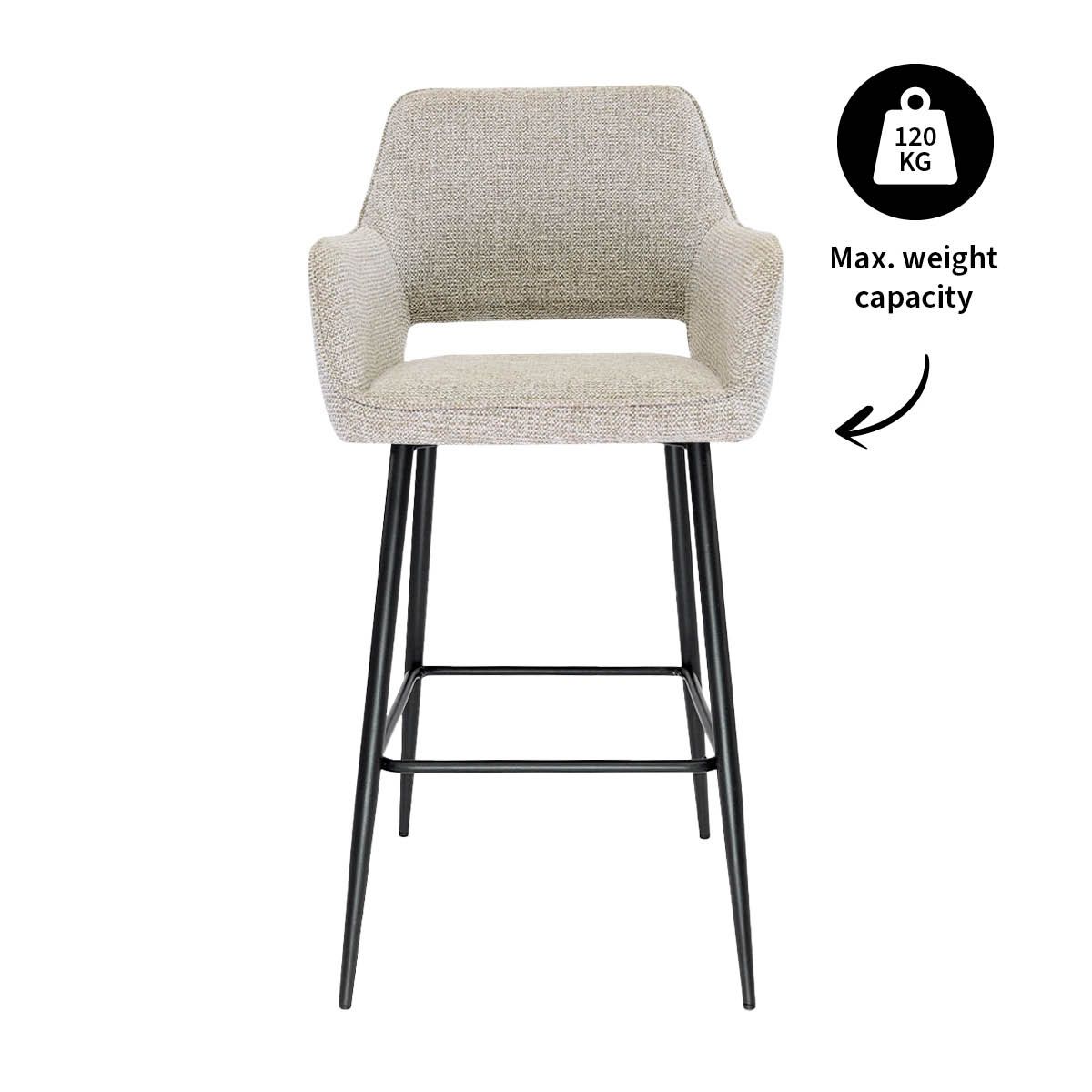 What makes YONI truly special is its seating comfort. The seat is sturdy but wonderfully soft, and together with the well-positioned armrests, this means you can effortlessly linger at the bar for another hour. The mixed-texture fabric upholstery gives it a warm, cosy look, and thanks to the integrated footrest, you'll always be relaxed. And good news: YONI is available in a range of colours, so there's always a version that perfectly matches your style.