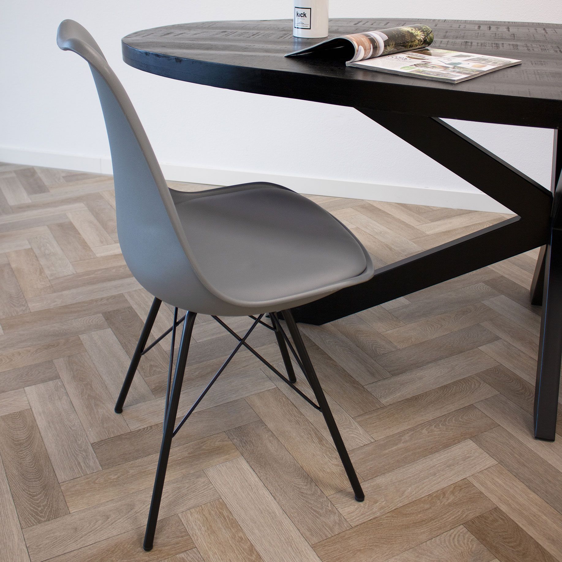 Looking for a dining chair that is cool, sleek, and comfortable all at once? Meet the KICK tub chair METAL LUUK. This modern eye-catcher instantly elevates your interior. The slim metal frame gives the chair an industrial touch, while the plastic shell with a soft PU leather seat ensures optimal seating comfort.