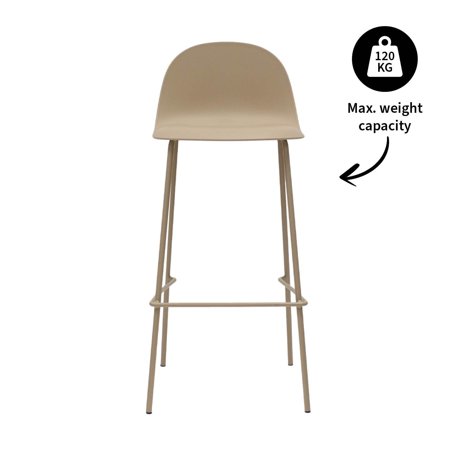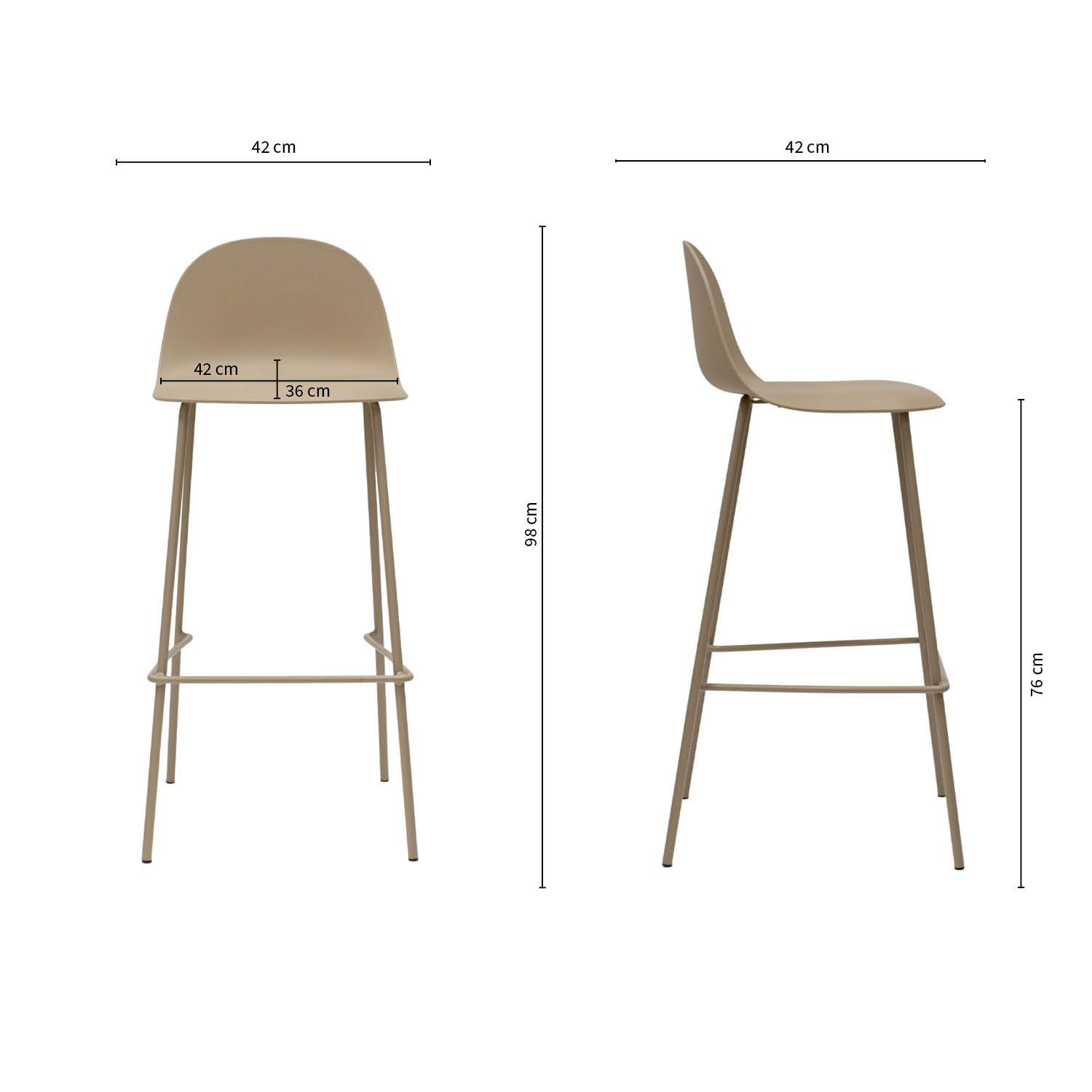 Enjoy the sun with Ciro! This cool bar stool combines style with comfort and functionality. Ciro has an elegant plastic shell that rests on a sturdy metal frame, the stool features a special outdoor coating so you can use the stool effortlessly both indoors and outdoors. The seat has a well-positioned backrest which ensures high-quality seating comfort. Bar stool Ciro is available in 2 Kicke colors and is a real asset to any garden!