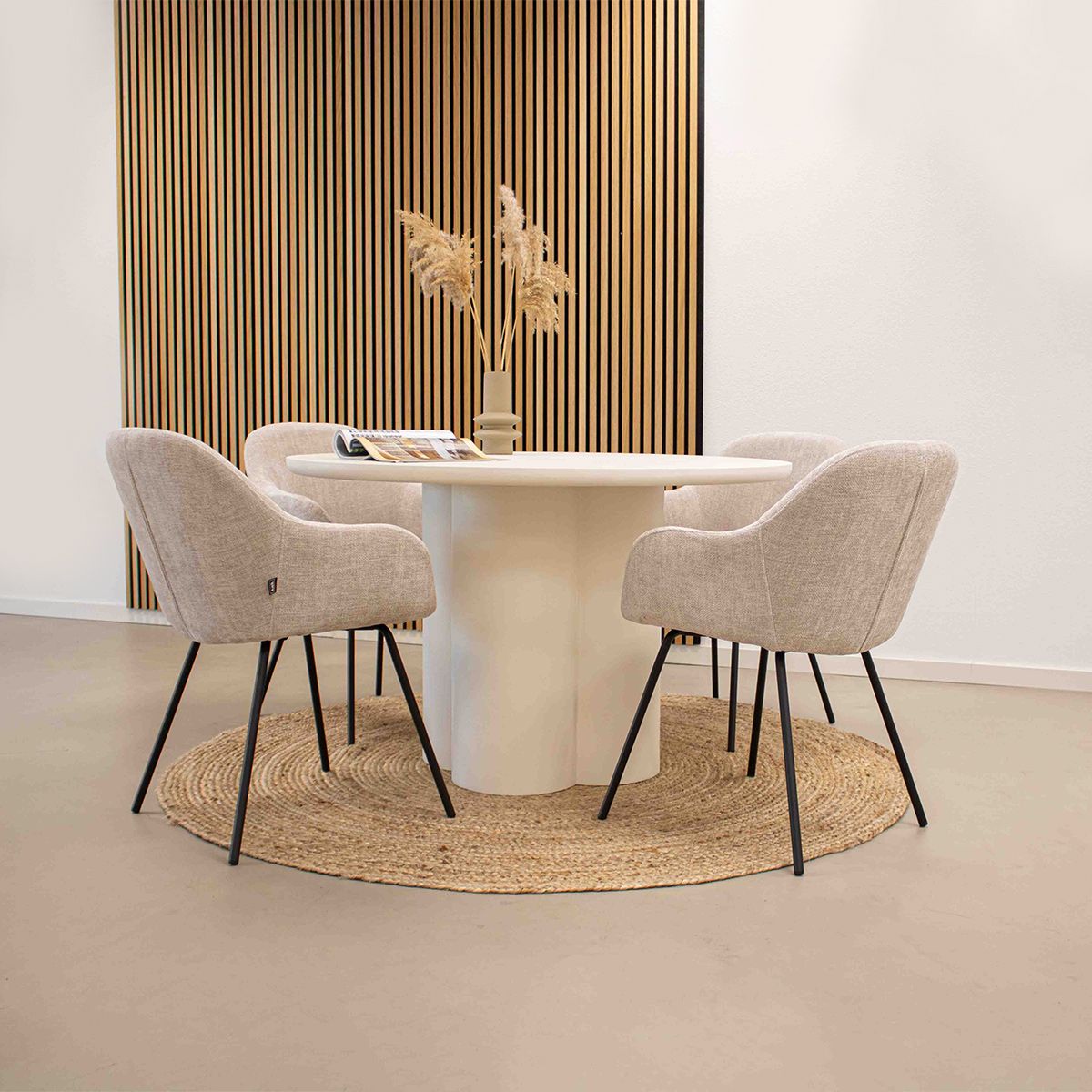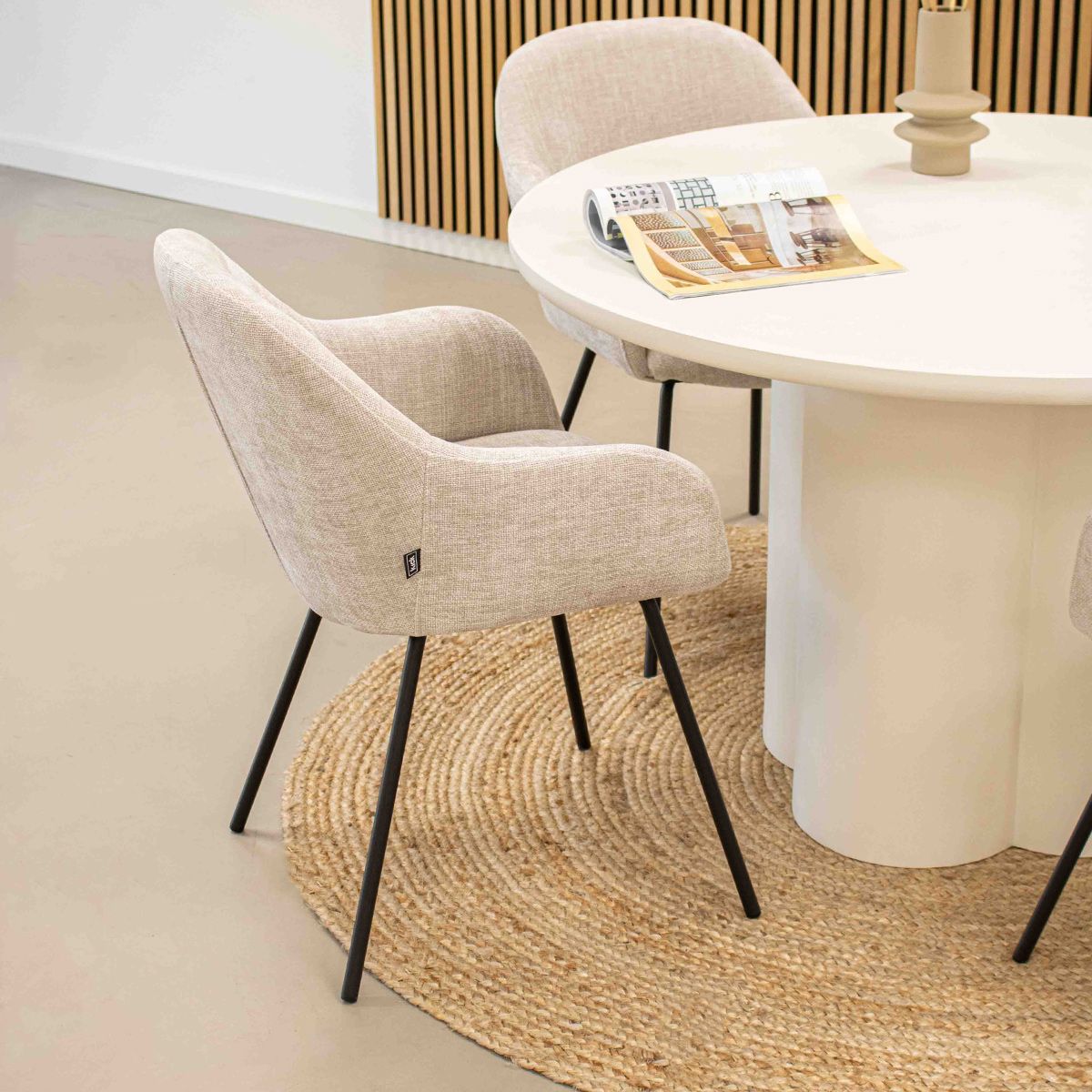 With its soft textured fabric, inviting curves and timeless appeal, ARDA fits into almost any interior, from modern to classic. The comfortable seat and subtle armrests ensure that you can sit effortlessly for hours, whether you are dining, working or having drinks.