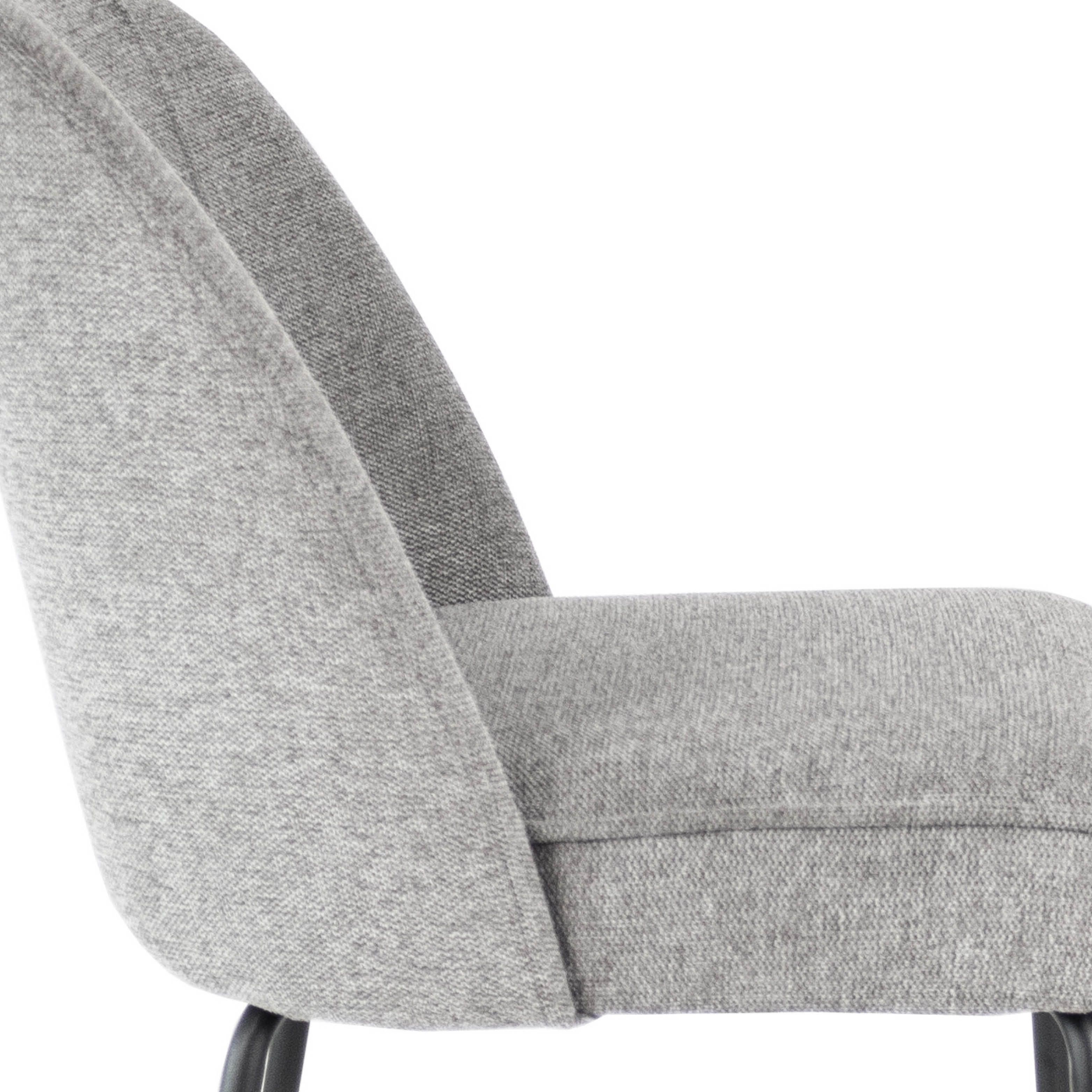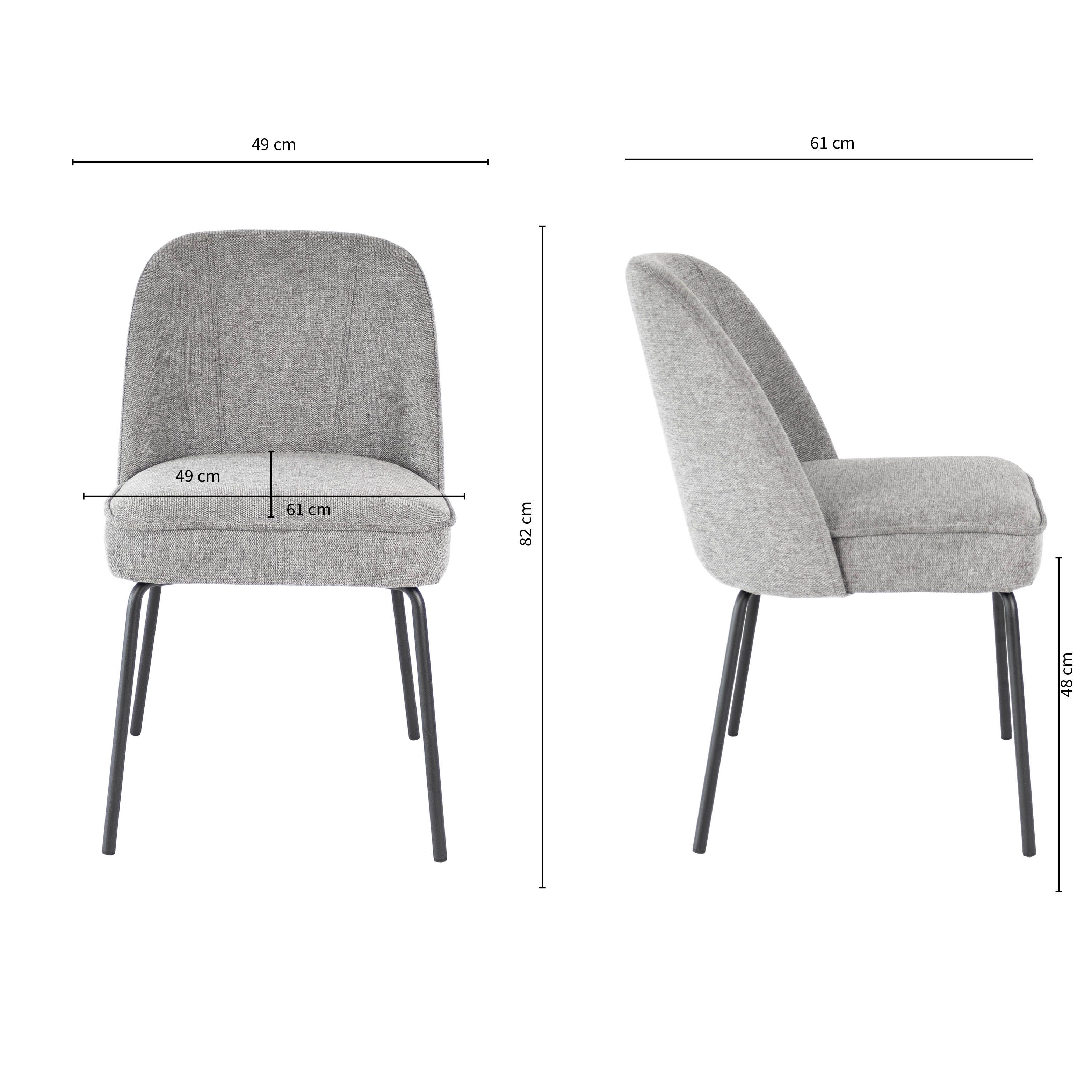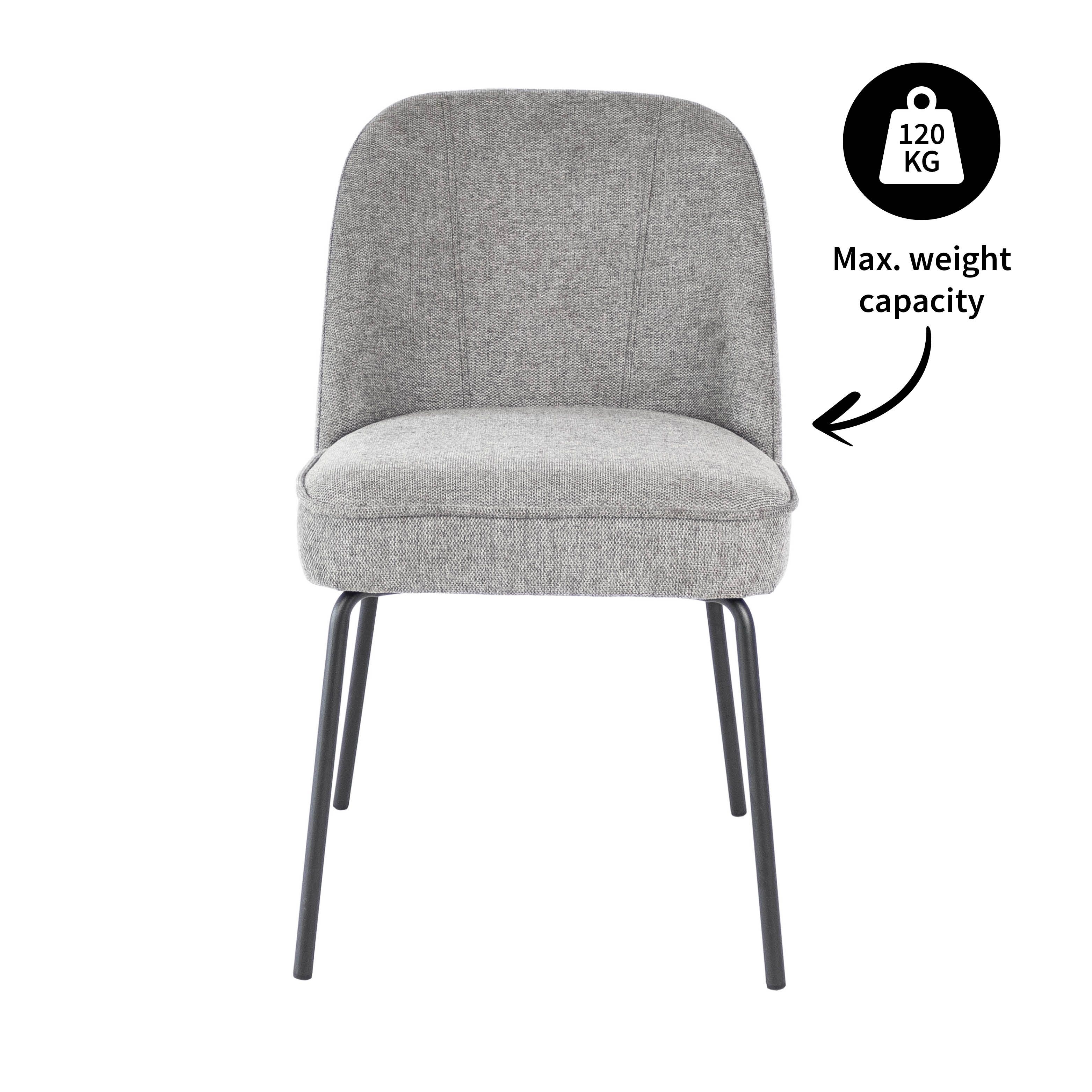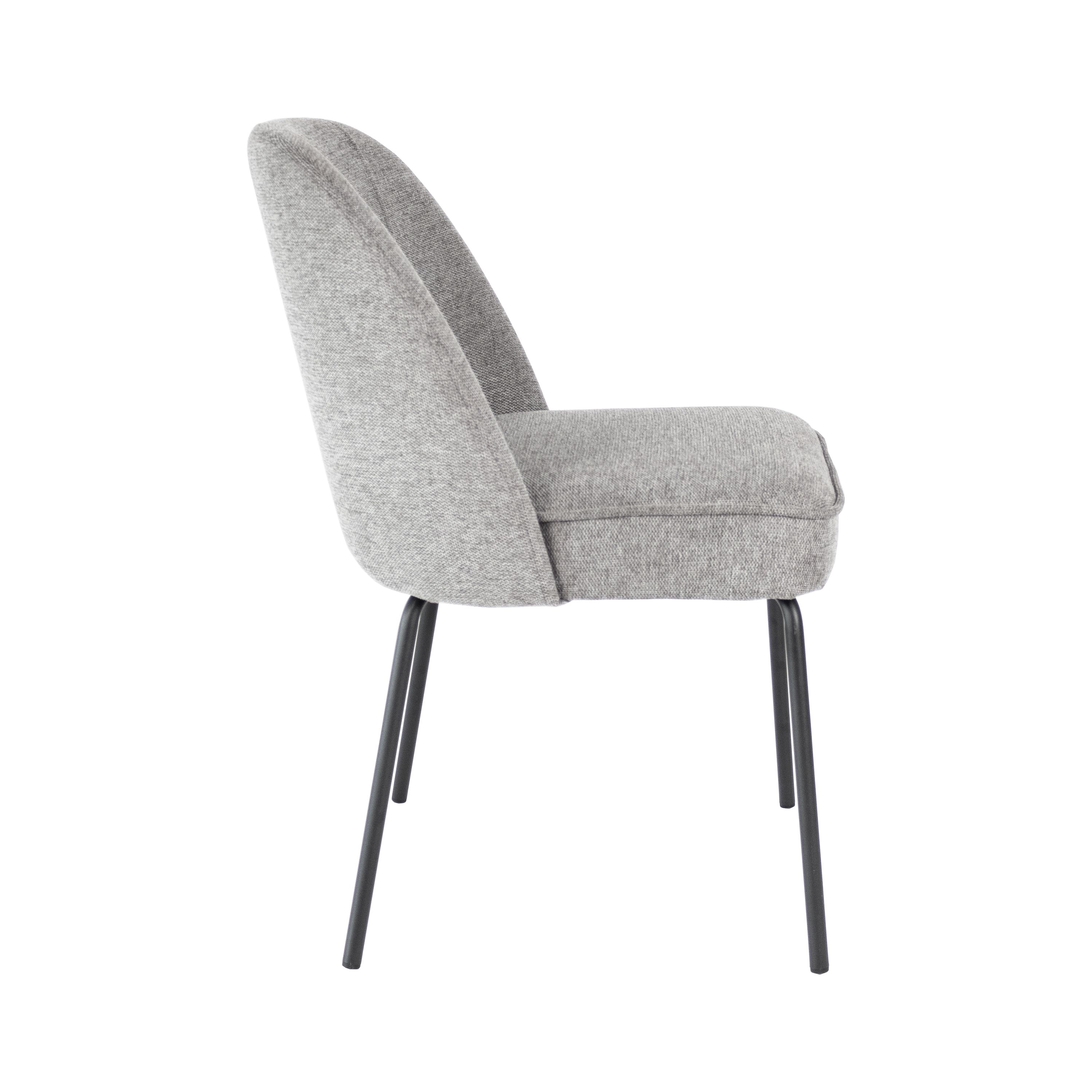 Meet Dining chair Britt: where style meets comfort. With a rounded backrest, richly padded seat, textured fabric upholstery and a sleek black metal base, Britt exudes elegance. As an added detail, the backrest has 2 decorative stitching at the front. Available in various colours.