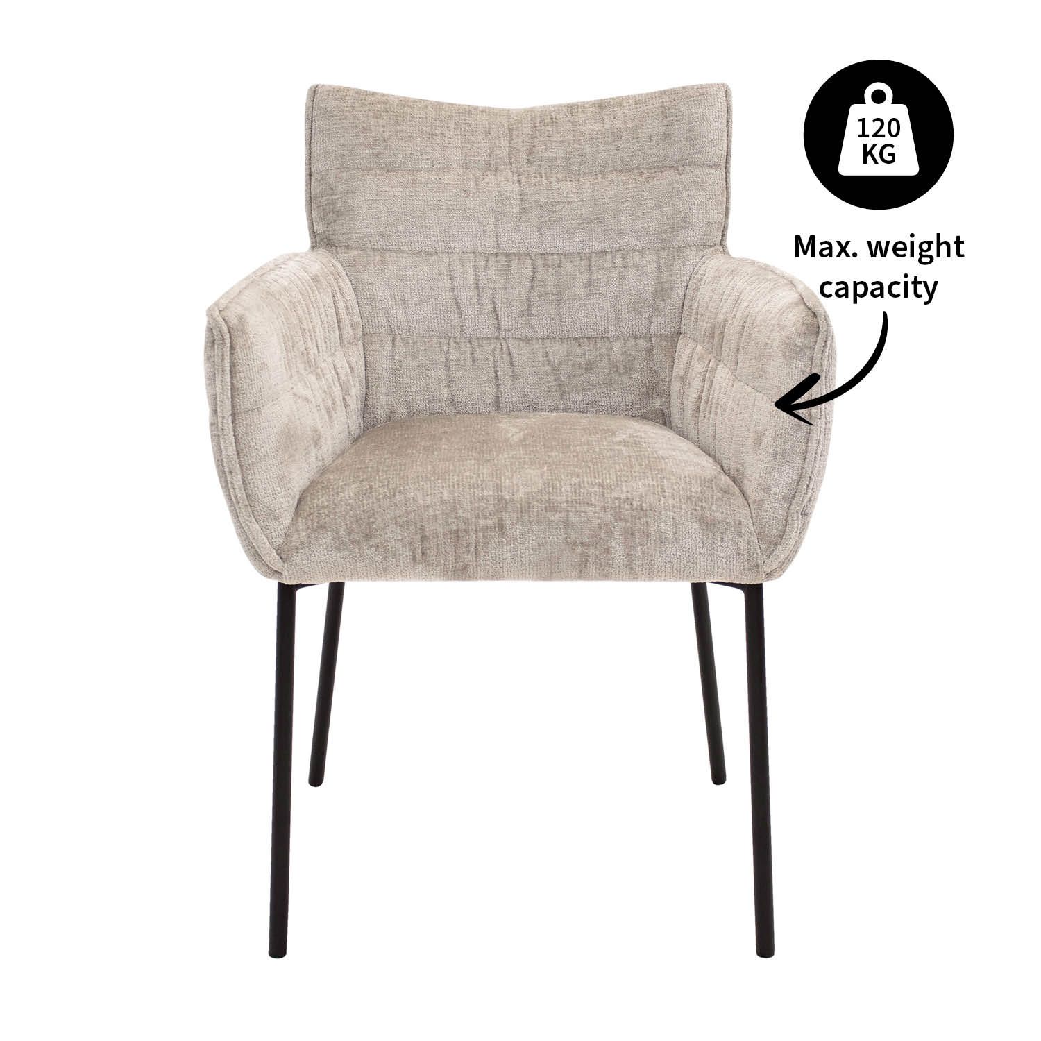 SAY HELLO TO GOOS! GOOS is upholstered in a soft Chenille fabric, allowing you to enjoy a comfortable seating experience. Chenille is a soft and fluffy fabric known for its luxurious look and texture. The frame is made of metal and is finished in an elegant black color. This versatile dining chair is available in a variety of colors, so you can find the perfect match for your decor.