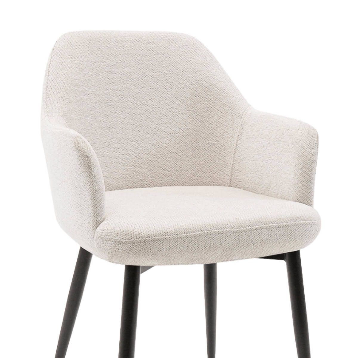 The soft textured fabric feels pleasant to the touch and gives JODI a luxurious, inviting look. Thanks to the spacious, comfortable seat and the finely shaped armrests, you will always sit relaxed, even during long dinners. The metal base with a matt black finish provides a bold contrast and completes the sleek design. JODI is available in different colours, allowing it to effortlessly match your interior style.