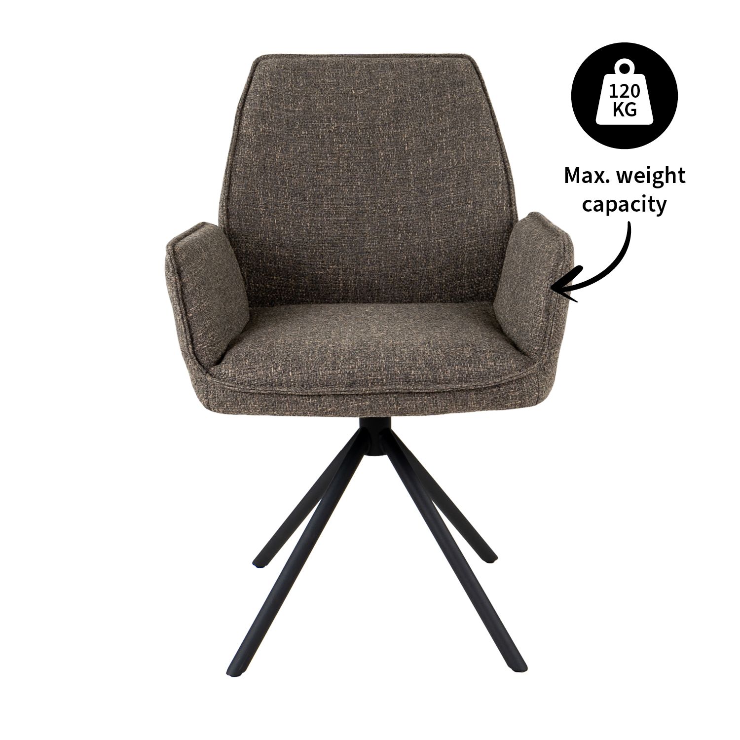 LOOK AT LEX! This unique armchair owes its comfort to the snugly fitting back and soft seat. The cotton texture upholstery combined with the black steel frame give this chair a luxurious look. With dining chair Lex you will enjoy your meals with friends and family even more. Perfect for long dinners! Available in multiple colors so mix and match for the ultimate result! Totally Kick right! Our Lex is not rotatable.