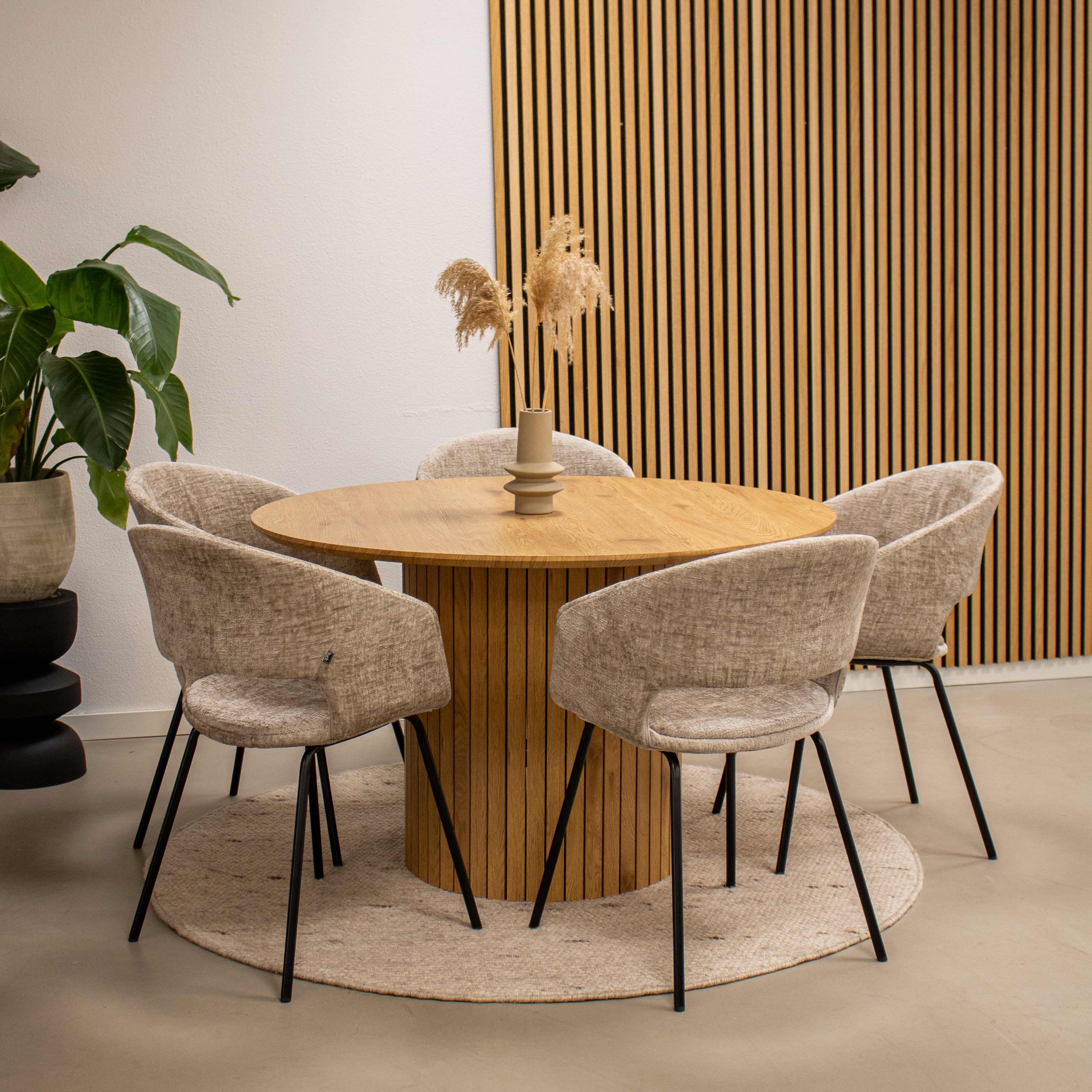 Meet dining chair Mette! Our bestselling Dean in a completely new look! This unique chair is upholstered in a soft texture fabric which creates an inviting feel. The notch in the backrest gives the chair a playful and contemporary character, while the black metal base creates and spacious feel. This combination makes the chair totally Kick. With dining chair Mette, dining becomes a party. Mette is available in 6 cool colors so there is always a perfect match for you!
