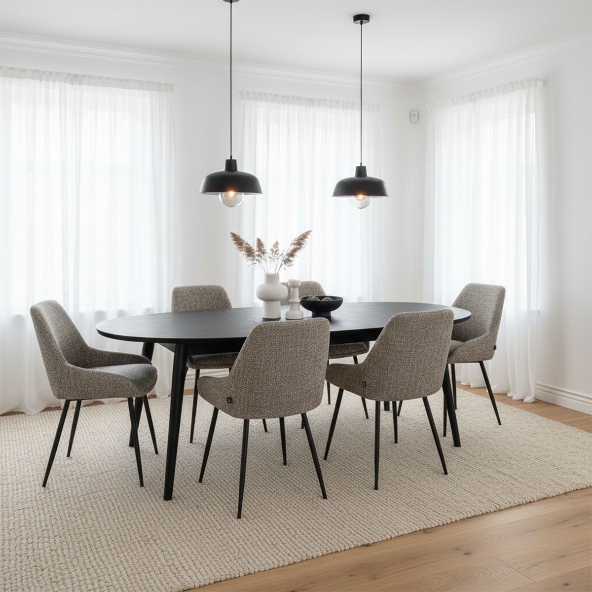 The sturdy black metal frame with four legs on the floor ensures optimal stability and a solid seating experience. Ideal for everyday use, long dinners, or cozy evenings with family and friends.