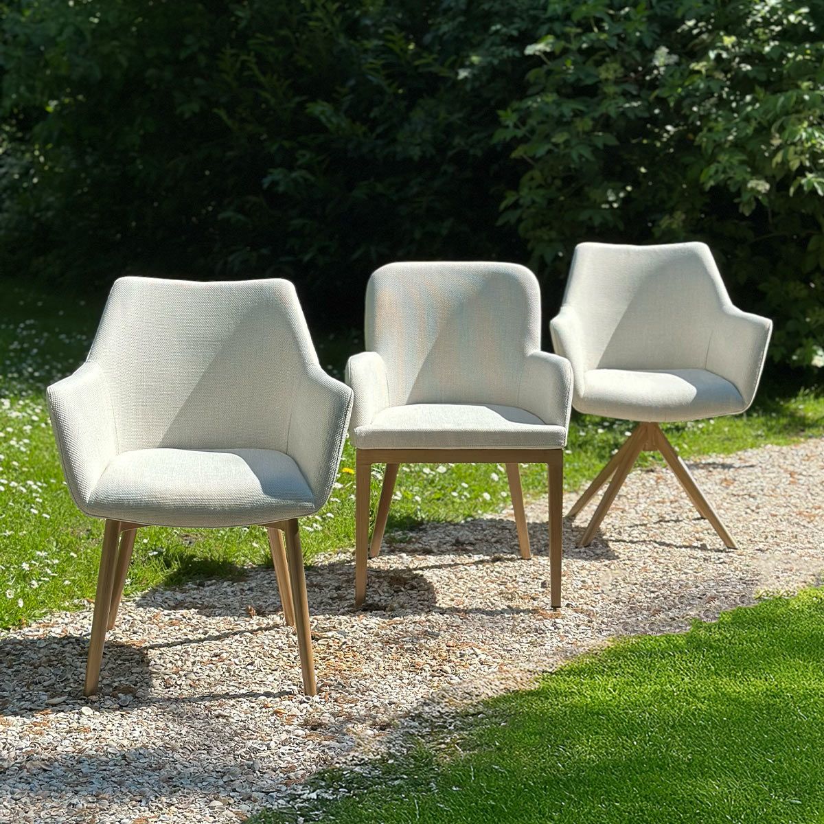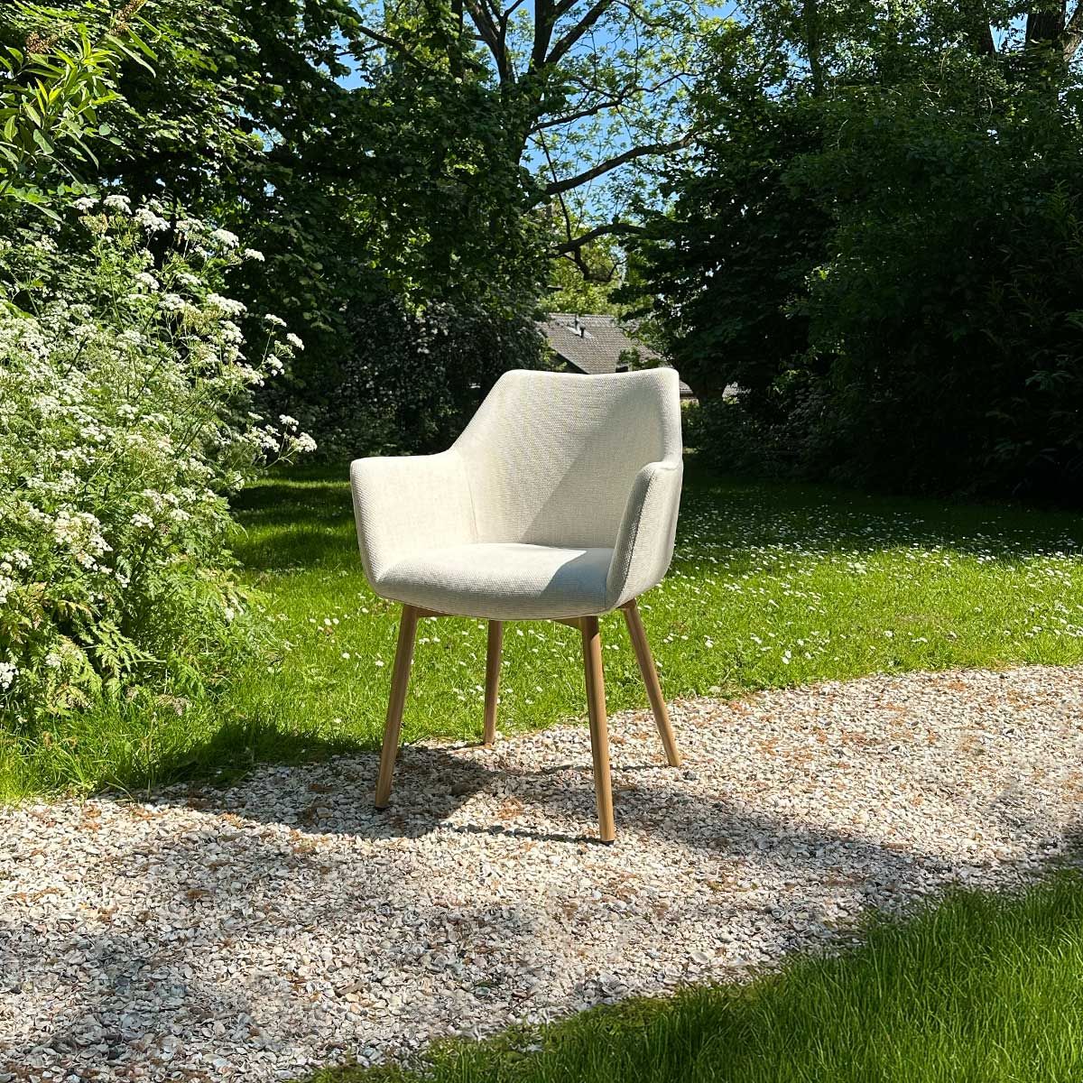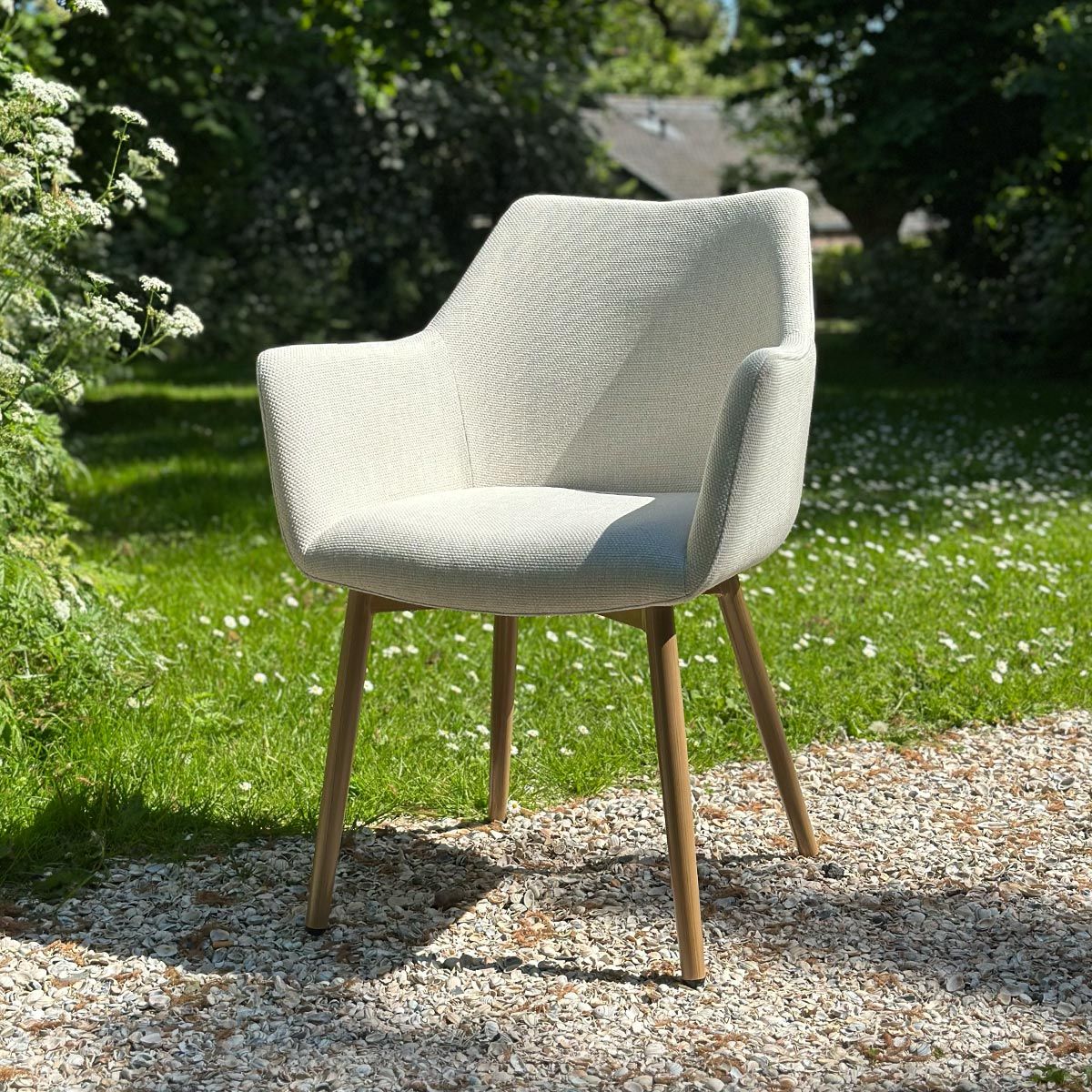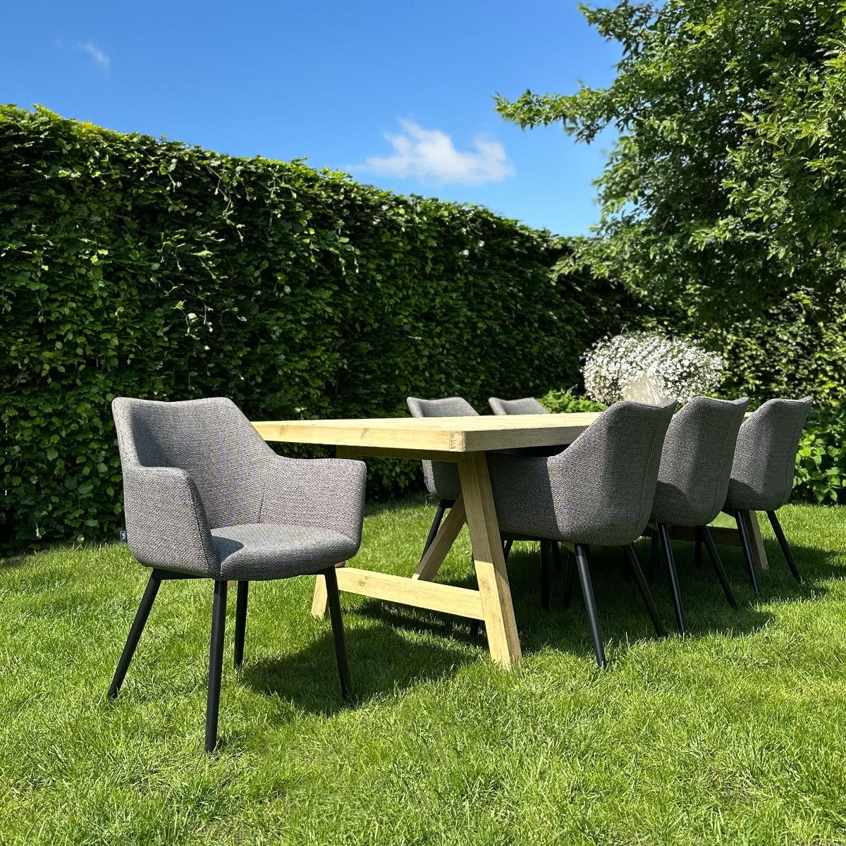 The seat is upholstered in an outdoor textured fabric that is water-resistant and dries extra fast. The chair has well-positioned armrests and high-quality seating comfort, allowing you to relax on this chair during, for example, a summer evening.