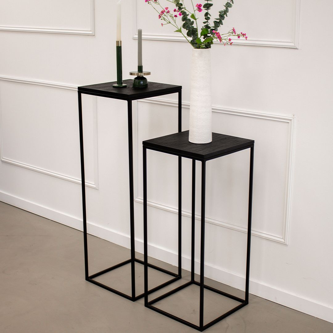 THIS IS DANA! Plant stand Dana lets your beautiful vase with flowers or other beautiful artwork extra shine! Because of its unique design Dana can be applied in various living styles and is a real eye-catcher in any interior. The top of Dana is made of acacia wood and rests on a sturdy, black metal frame. Dana combines atmosphere, functionality and style in one. Available in 2 different sizes.