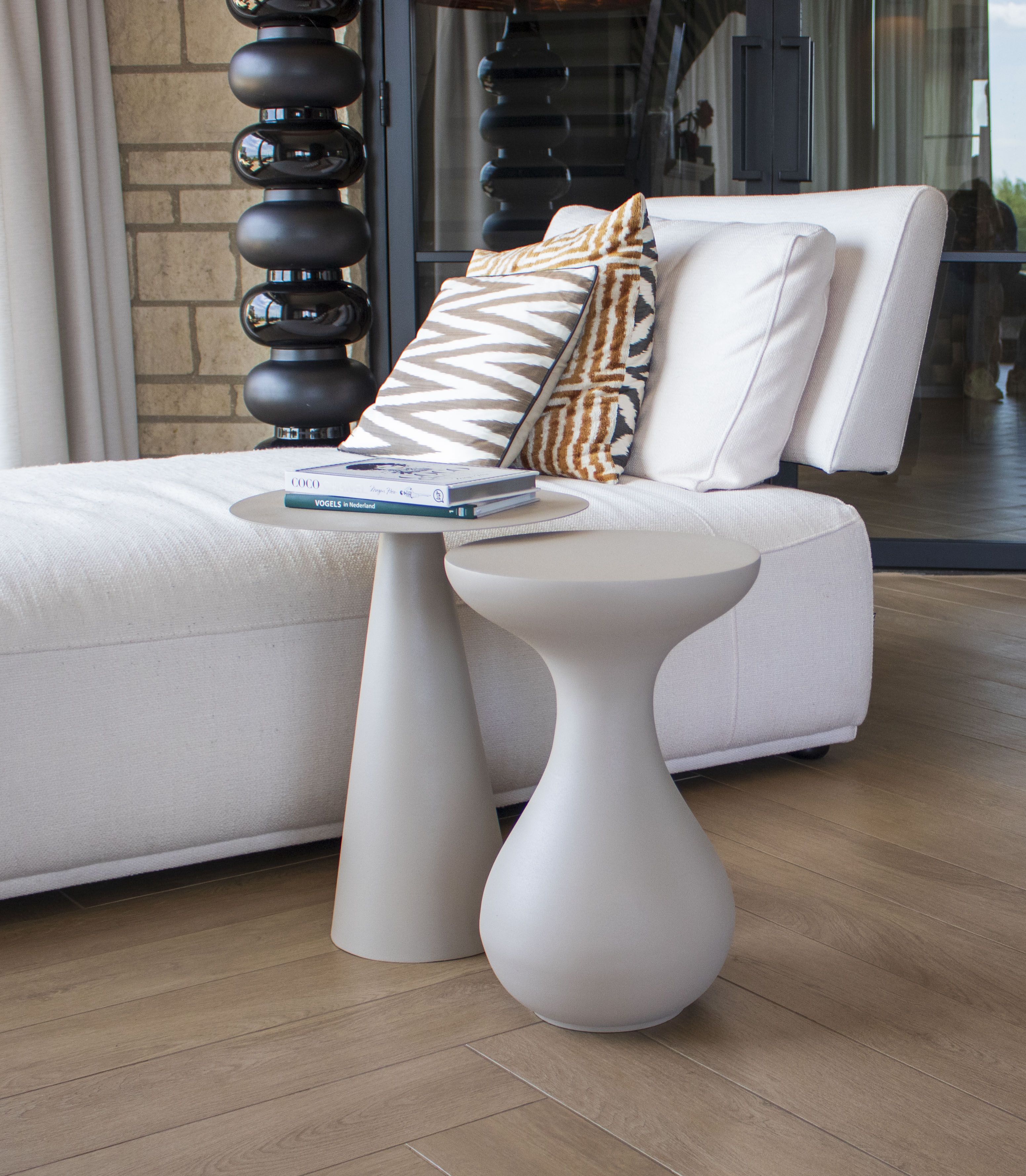 CHECK OUT DEZ! This side table has a unique design. This makes it compatible with different interior design styles. Convenient as an extra side table or nice to combine as a coffee table set with one of the other tables in this series. Dez is made of aluminium making it suitable for both indoor and outdoor use.