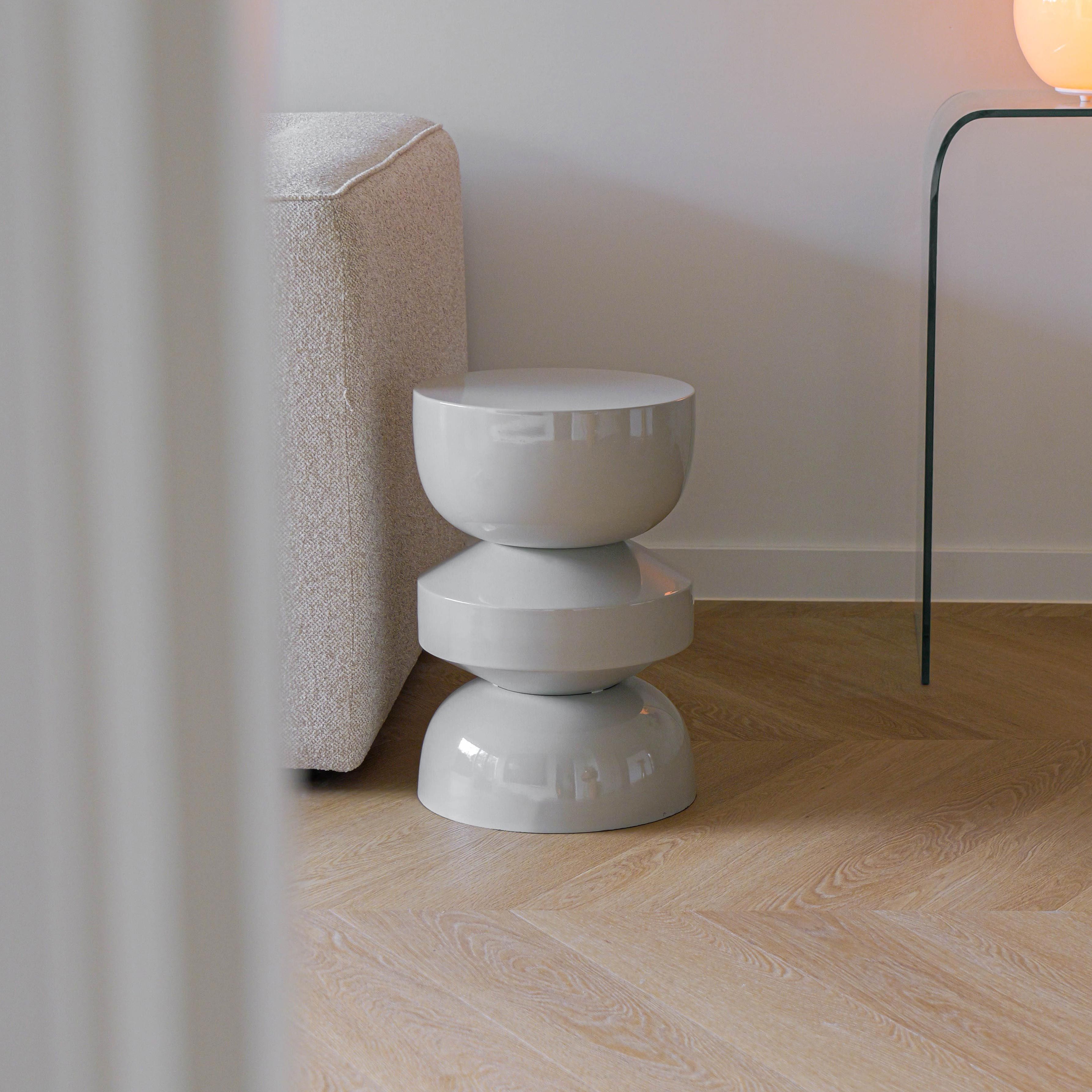 ESRA is made of high-quality metal with a glossy finish that gives it a luxurious look. The round, layered shapes make this table a real eye-catcher in any interior. Perfect as a statement piece next to your sofa, as a plant table or as a decorative accent in the living room, bedroom, office or any other space.