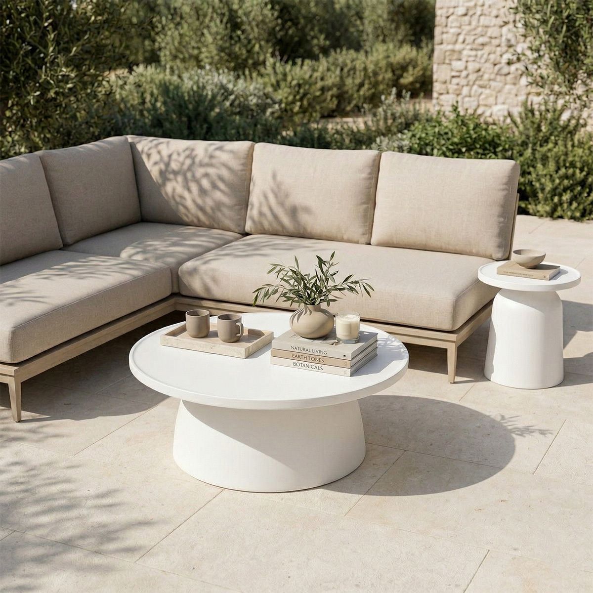 Discover the elegant simplicity of the KICK ISLA side table. This stylish side table effortlessly combines tranquillity, atmosphere and functionality, making it a sophisticated addition to both your garden and your home. Its modern design, featuring rounded shapes, gives ISLA a timeless look that blends subtly with a wide range of interior and garden styles.