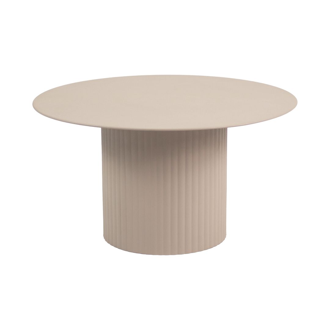 CHECK OUT TILO! Side table TILO is cool, stylish, unique and available in 2 sizes. TILO is made of metal and available in a beautiful beige shade. The table has a sleek round top which rests on a round ribbed base which makes TILO a real eye-catcher. Combine the 2 tables together and you have a beautiful and functional coffee table set.