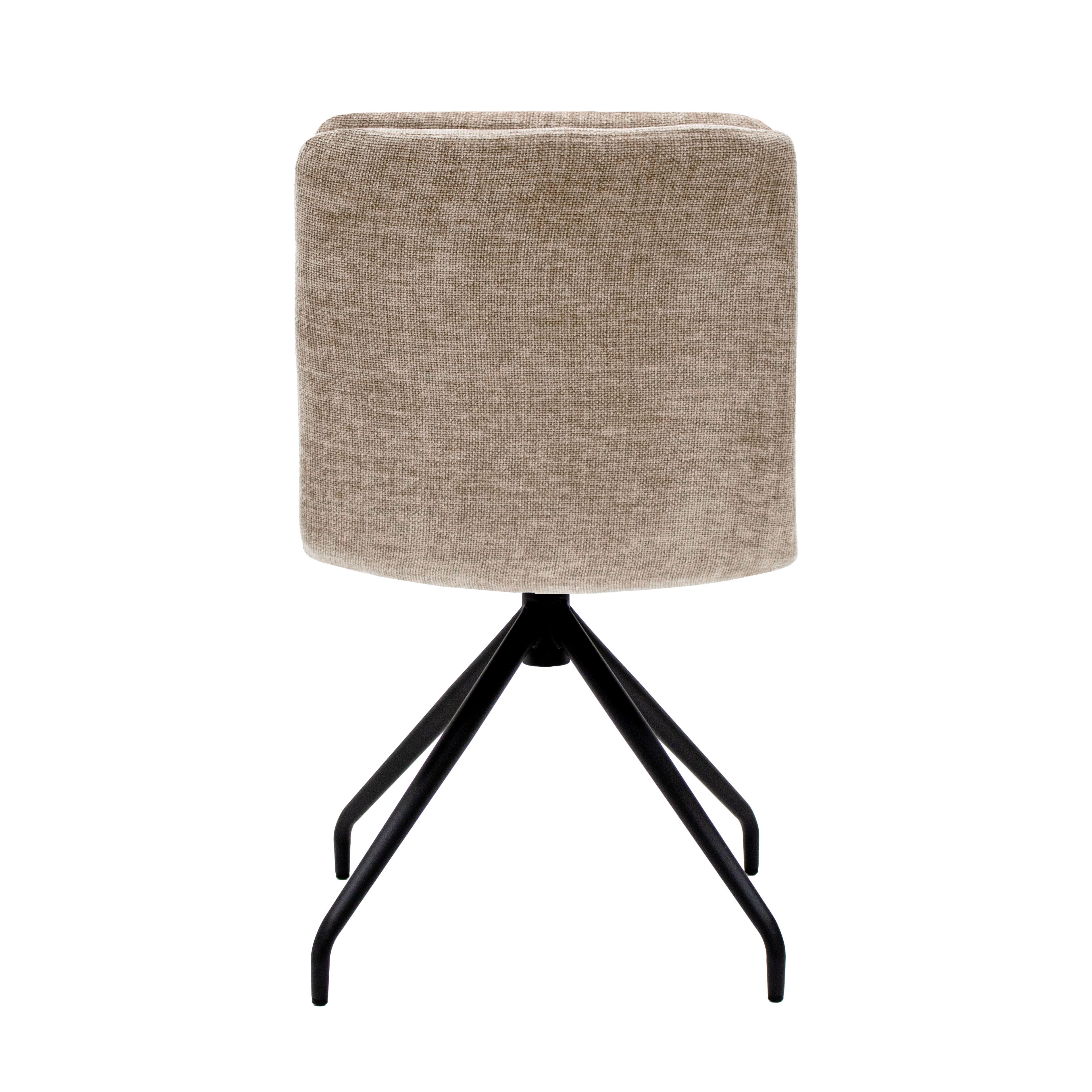 Meet swivel chair Aron! This cool chair is a perfect combination between tough and stylish. The swivel base gives you the space to turn 360 degrees in any direction. Aron is upholstered with a fine texture fabric, this fabric has a soft touch which gives the chair a warm and inviting look. What makes Aron unique? Both the seat and back have a fine cushion which boosts the comfort of the chair. Aron is available in various colors making mixing at the table a party!
