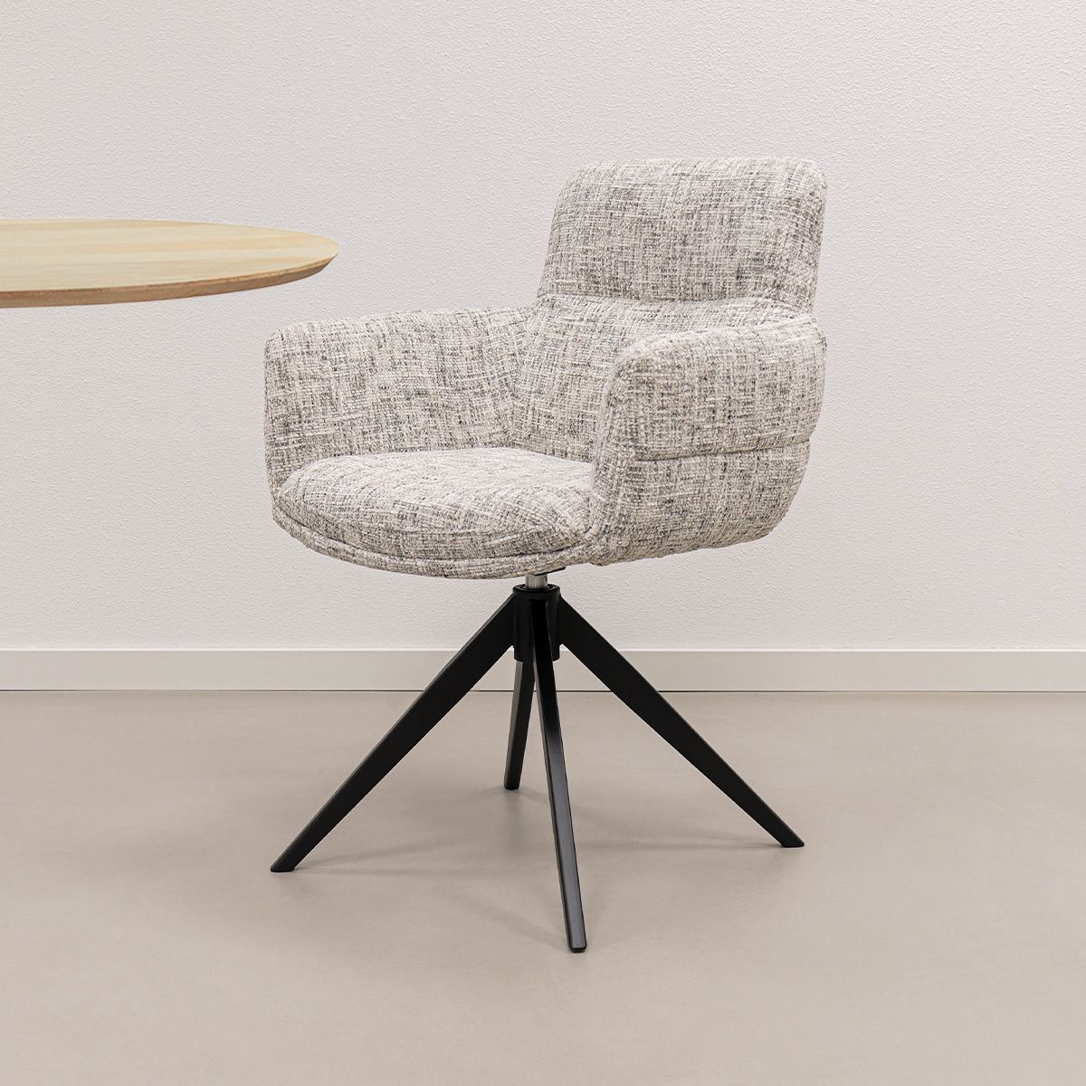 Comfortable seating has never been so stylish. The KICK LIVA swivel chair combines a luxurious look with exceptional comfort. The soft, mottled textured fabric gives the chair a warm and high-quality look, making LIVA a real eye-catcher in your dining area or workspace.