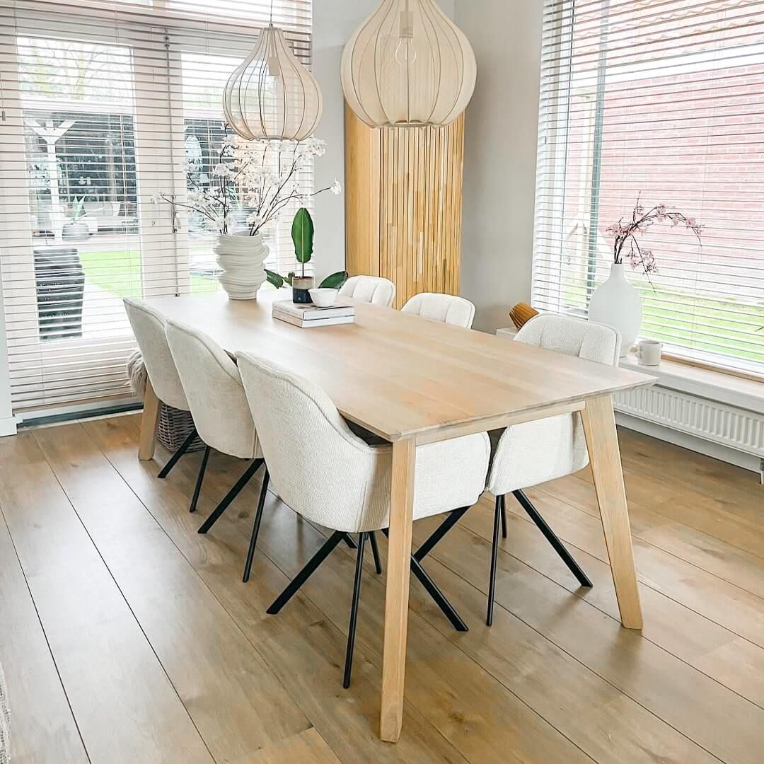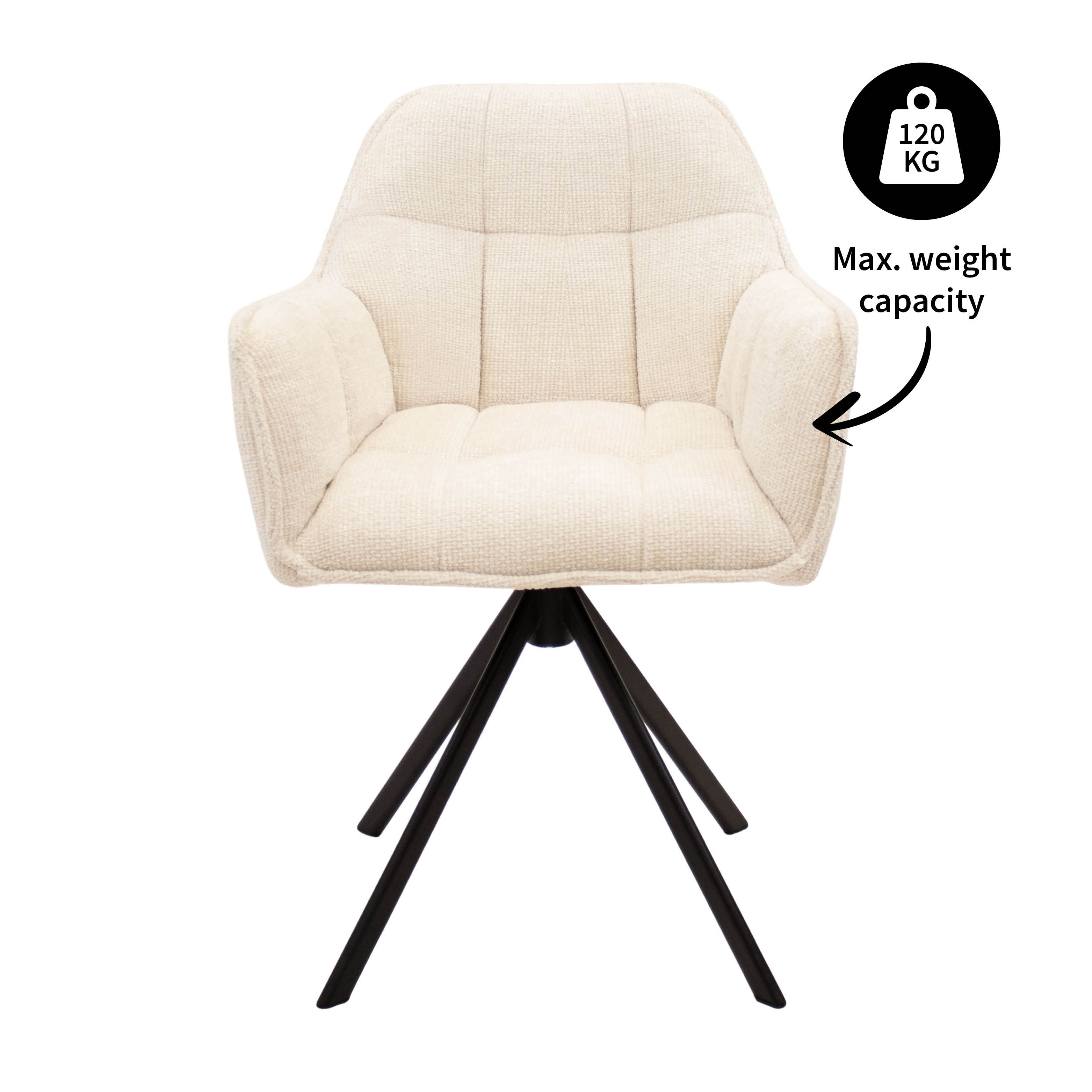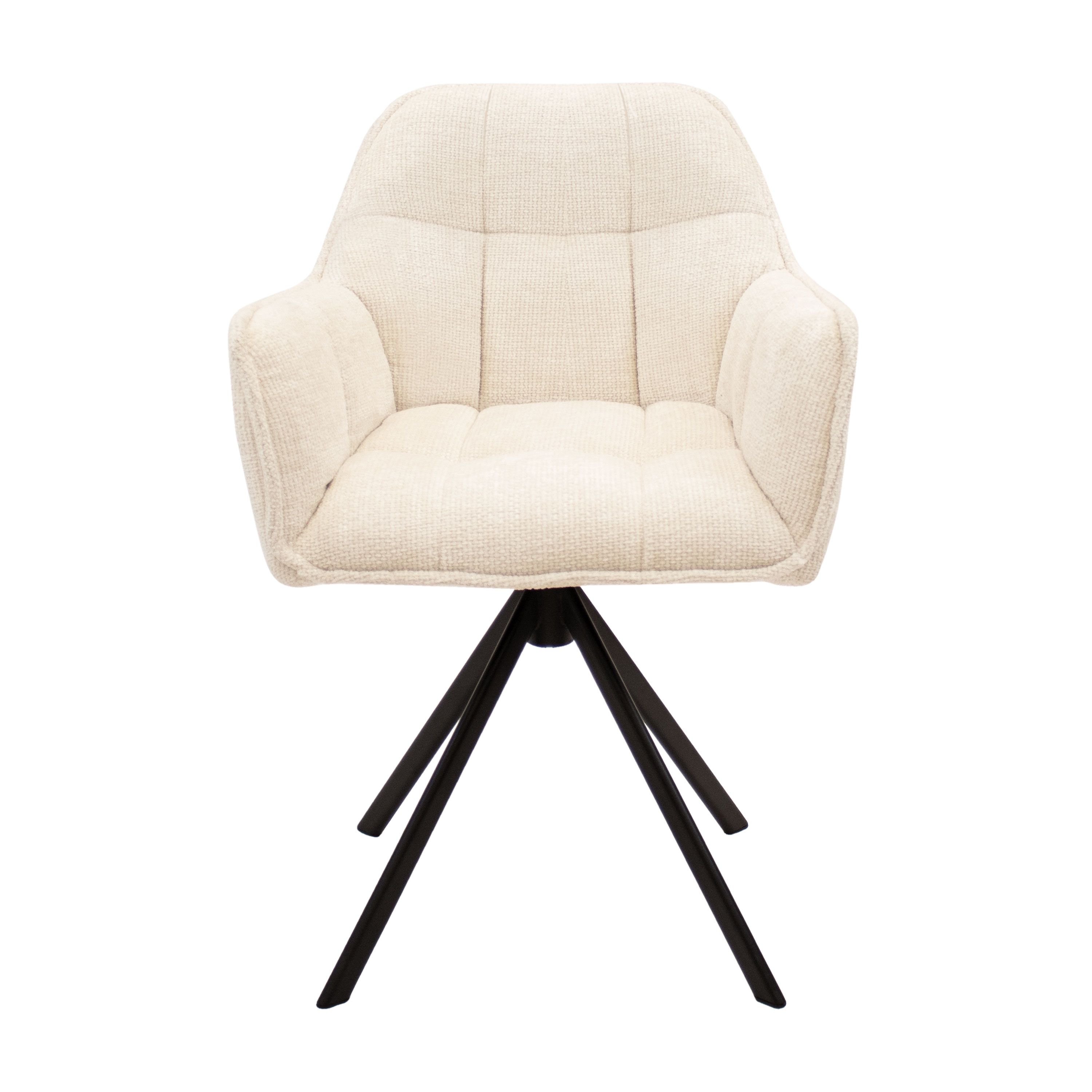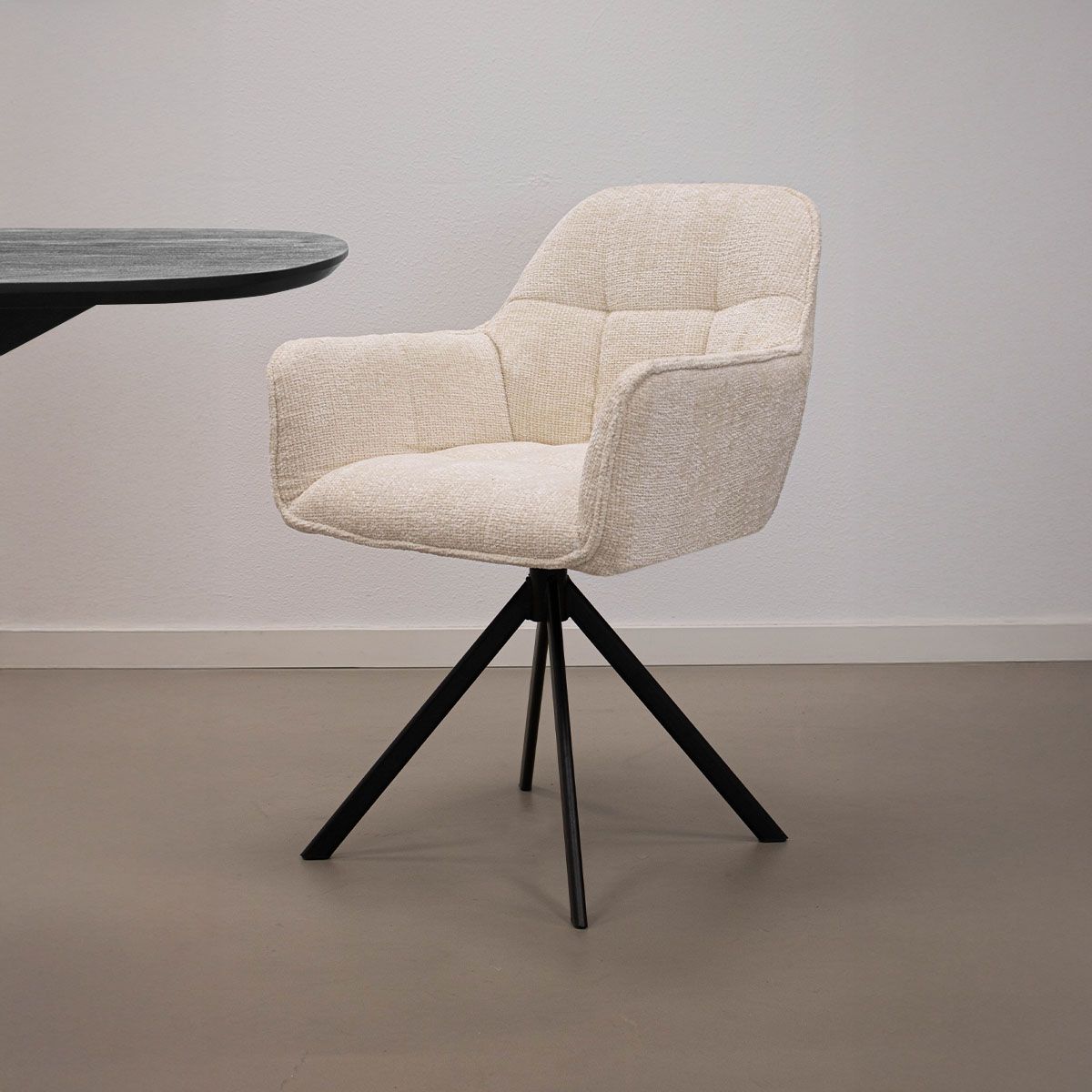 LUC is the perfect blend of comfort, style, and functionality. With its 180-degree swivel base, LUC not only brings freedom of movement to the table, but also adds a modern flair to your interior. The luxurious look of the coarse chenille fabric creates a warm, inviting atmosphere, while the armrests offer extra comfort during long dinners or cozy evenings.