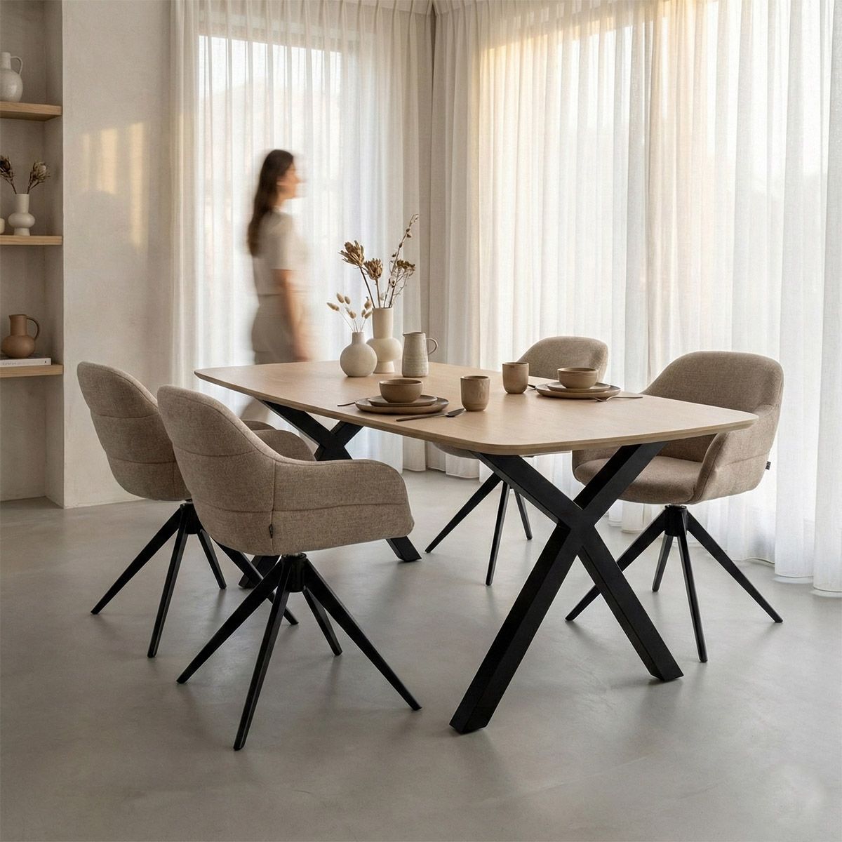 Want to upgrade your dining area or workspace with a chair that combines comfort and design? Then the KICK NOEL swivel chair is the perfect choice. With its soft curves, luxurious linen-look fabric and playful details, NOEL is a stylish addition that you will enjoy every day.