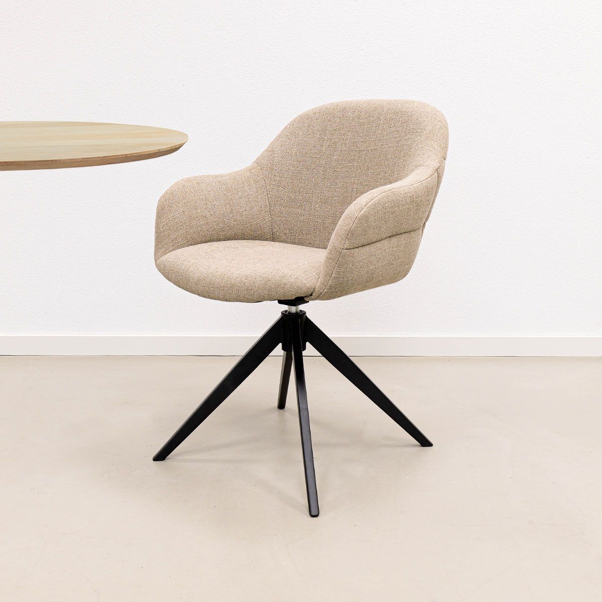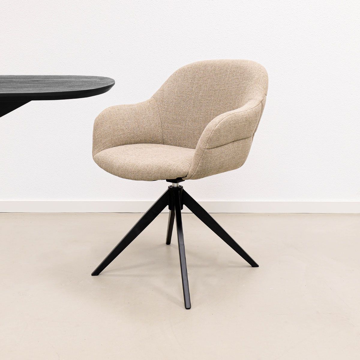 Want to upgrade your dining area or workspace with a chair that combines comfort and design? Then the KICK NOEL swivel chair is the perfect choice. With its soft curves, luxurious linen-look fabric and playful details, NOEL is a stylish addition that you will enjoy every day.