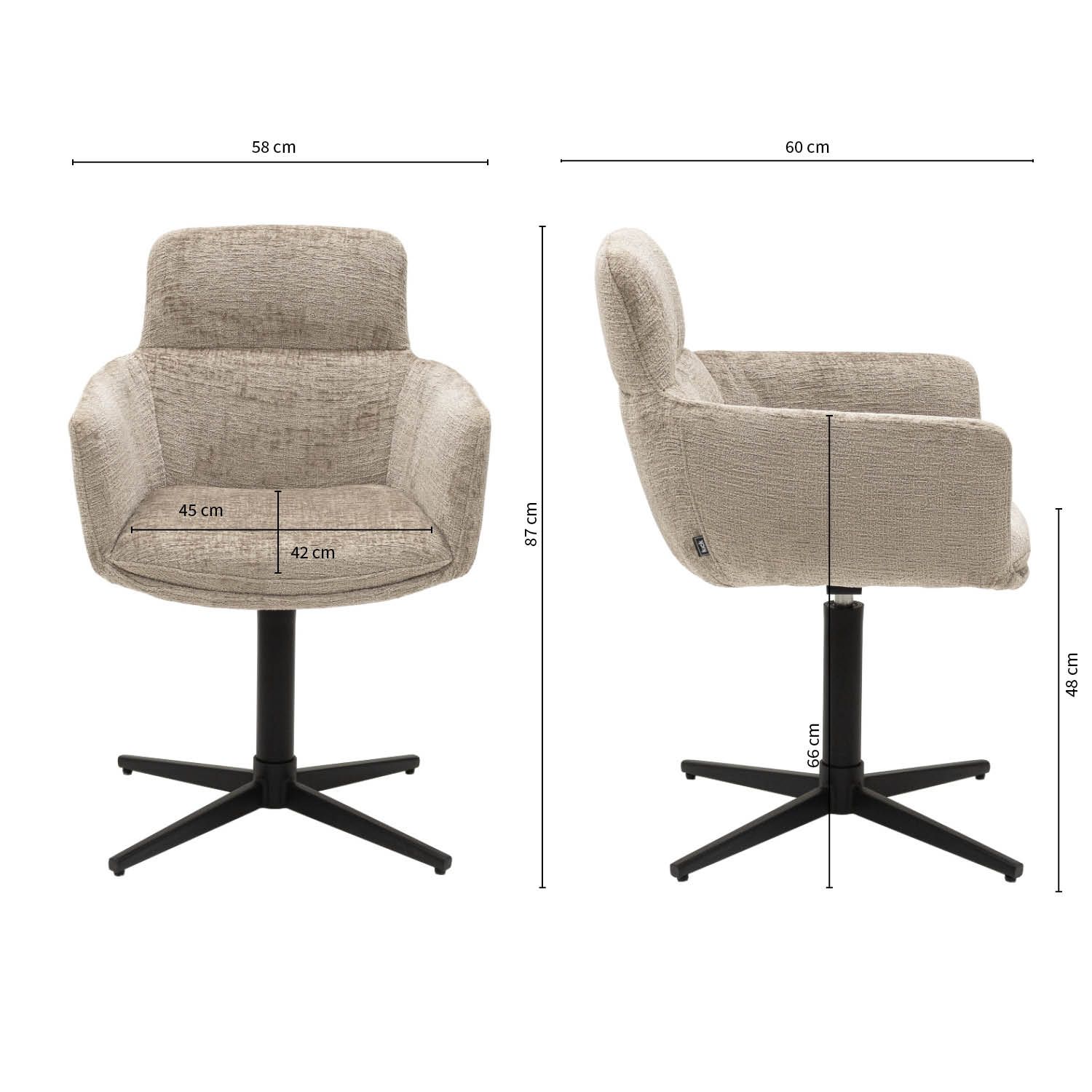 - Seat height: 48 cm