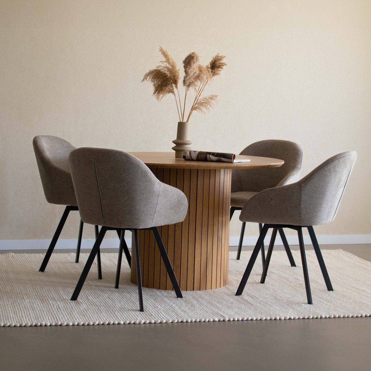 Lernen Sie Olof kennen! Der Sitz ist sorgfältig platziert und hat eine schwere Textur, die für den endgültigen Zweck geeignet ist. Was Olof wirklich einzigartig macht, ist das um 180 Grad drehbare Untergestell, mit dem Sie sich leicht und in jede Richtung bewegen können. Erhältlich in verschiedenen Farben.