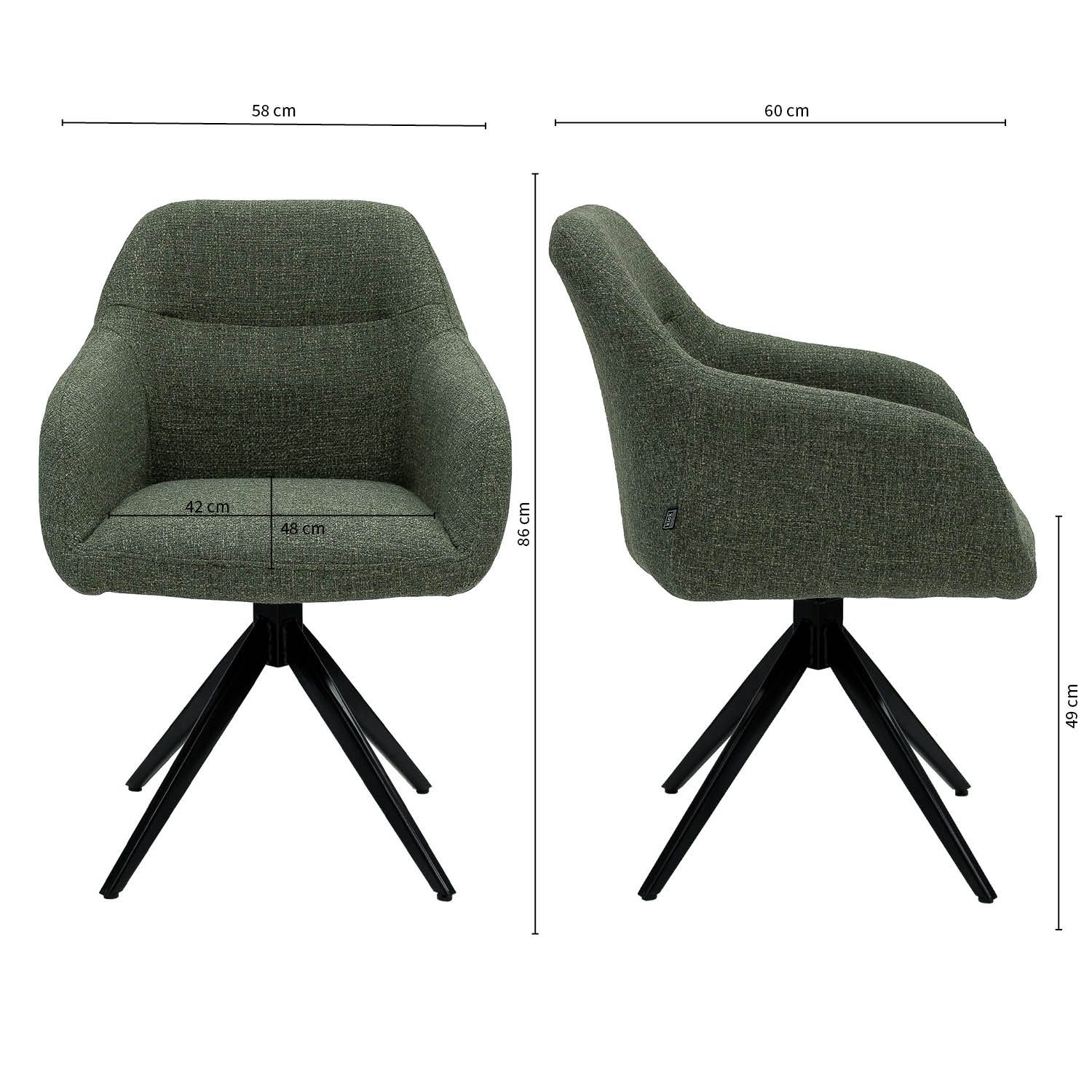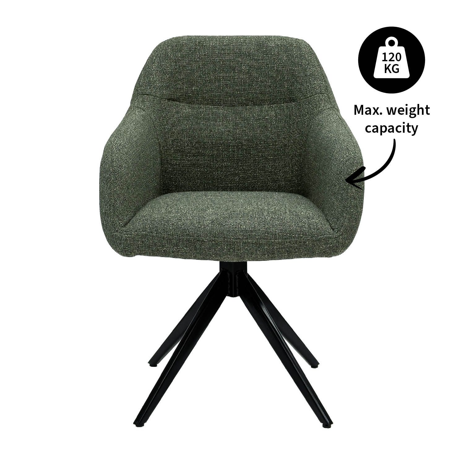 Looking for a dining chair that combines comfort, design, and functionality? Then the KICK swivel chair RAVI is your perfect match. This modern swivel chair exudes class with its coarse textured fabric and sturdy black metal base. Thanks to the handy 180° swivel mechanism, you can enjoy extra freedom of movement, ideal during long dinners or cozy evenings at the table.