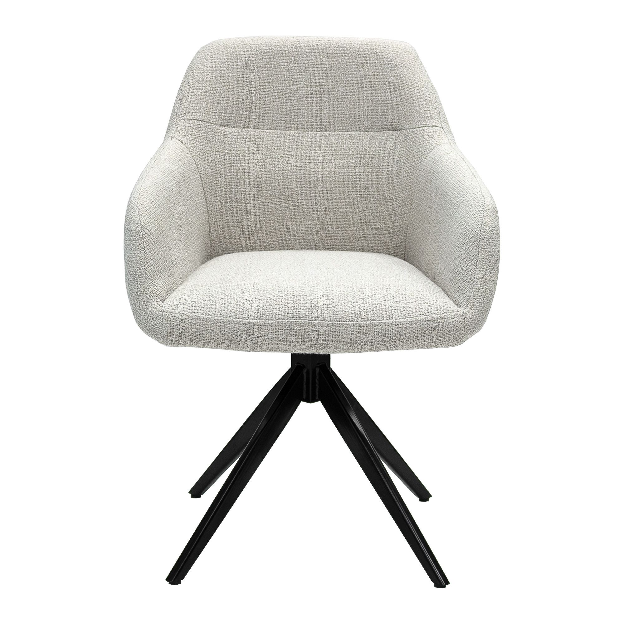 Looking for a dining chair that combines comfort, design, and functionality? Then the KICK swivel chair RAVI is your perfect match. This modern swivel chair exudes class with its coarse textured fabric and sturdy black metal base. Thanks to the handy 180° swivel mechanism, you can enjoy extra freedom of movement, ideal during long dinners or cozy evenings at the table.