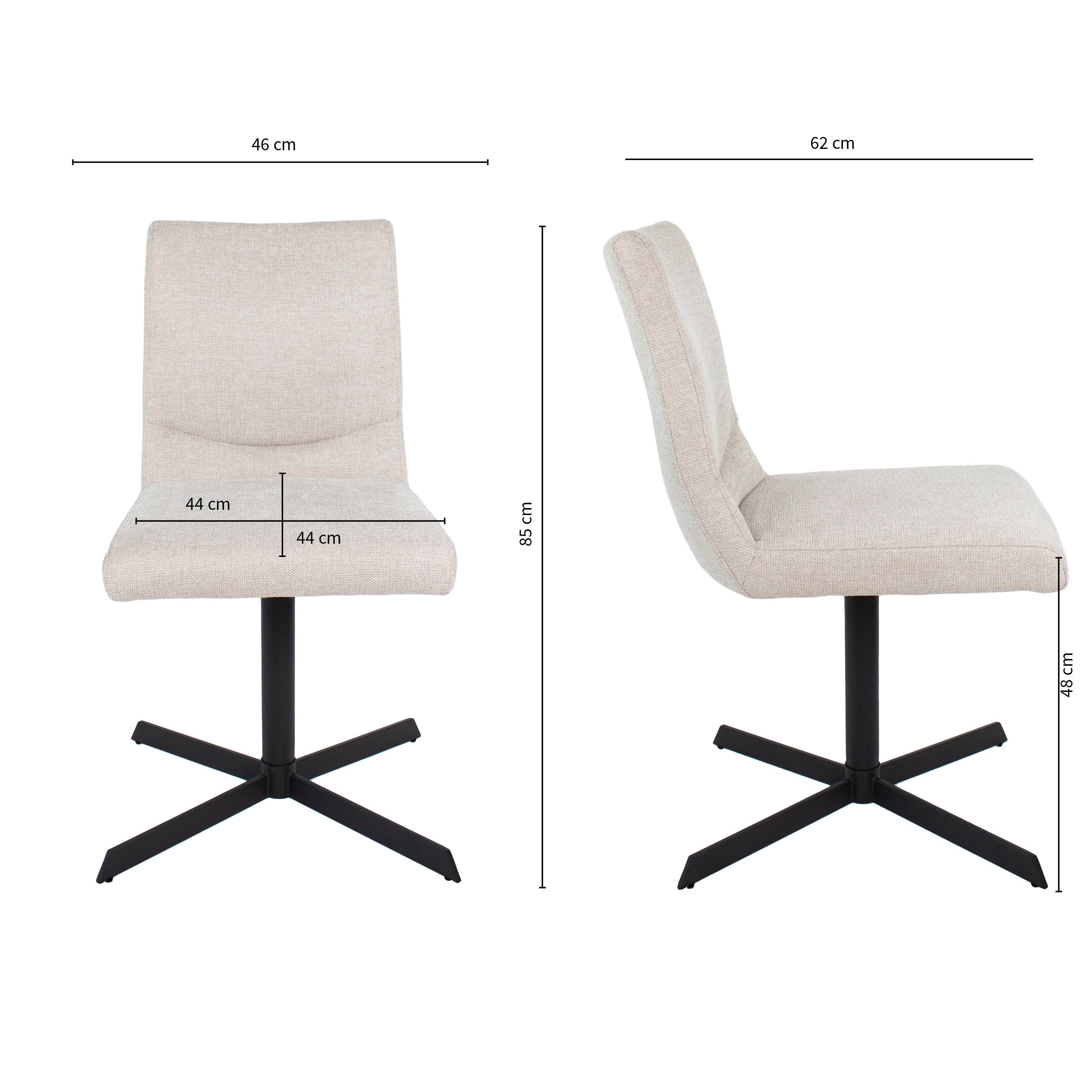 Sam is upholstered in a blended textured fabric and available in a variety of colors. The chair's striking metal frame is a feat of modern design and functionality. The frame features a 360-degree swivel mechanism, allowing you to move smoothly and easily join the dining table or have a conversation without moving the chair.