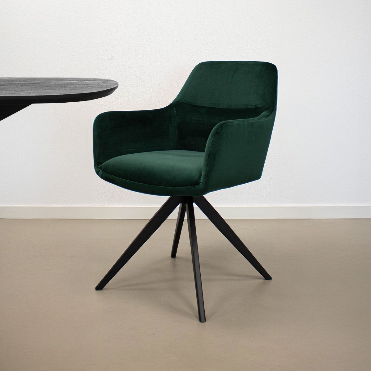 TOM is the ideal swivel chair for anyone who values comfort and style. With its 360-degree swivel base, this swivel dining chair offers ultimate ease of use: simply slide in and out of the table without having to move your chair. Thanks to the comfortable seat and armrests, you can effortlessly enjoy long dinners, cozy drinks, or a productive workday.
