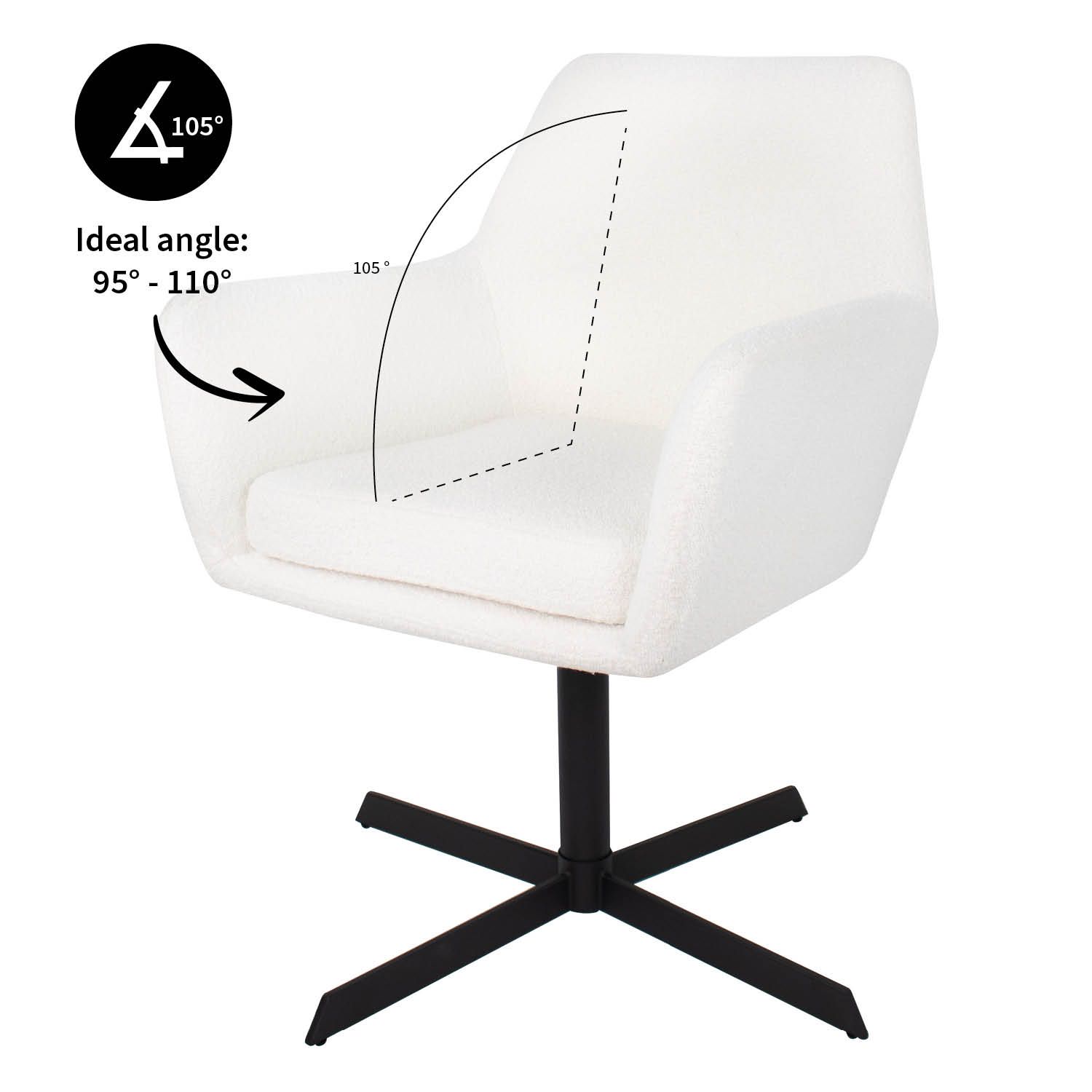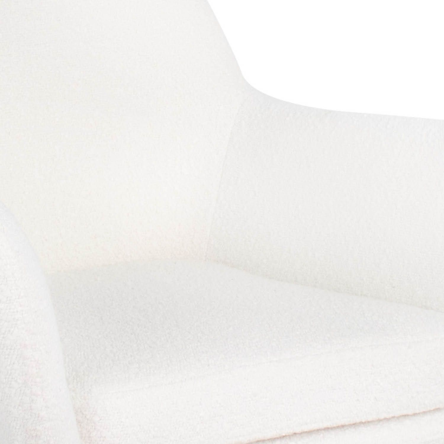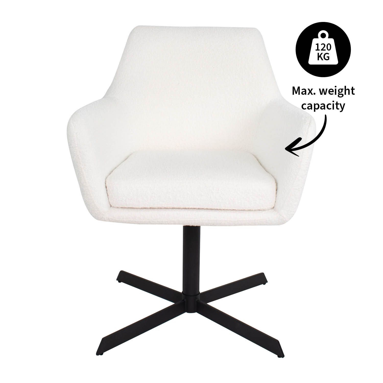 Viktor is enveloped in a soft bouclé fabric. The chair features well-positioned armrests that maximize seating comfort. The chair's striking metal frame is a feat of modern design and functionality. The frame features a 360-degree swivel mechanism, allowing you to move smoothly and easily join the dining table or have a conversation without moving the chair.