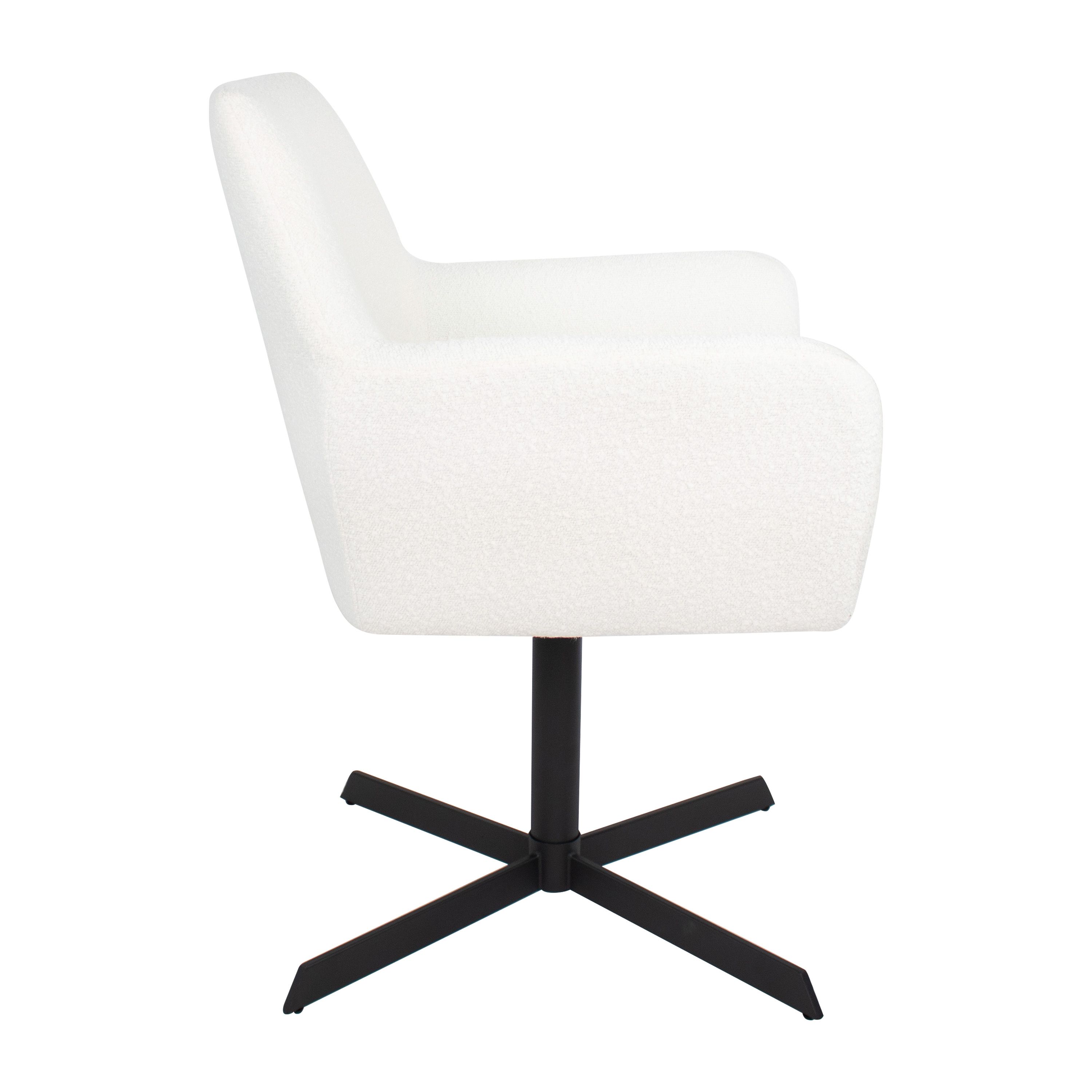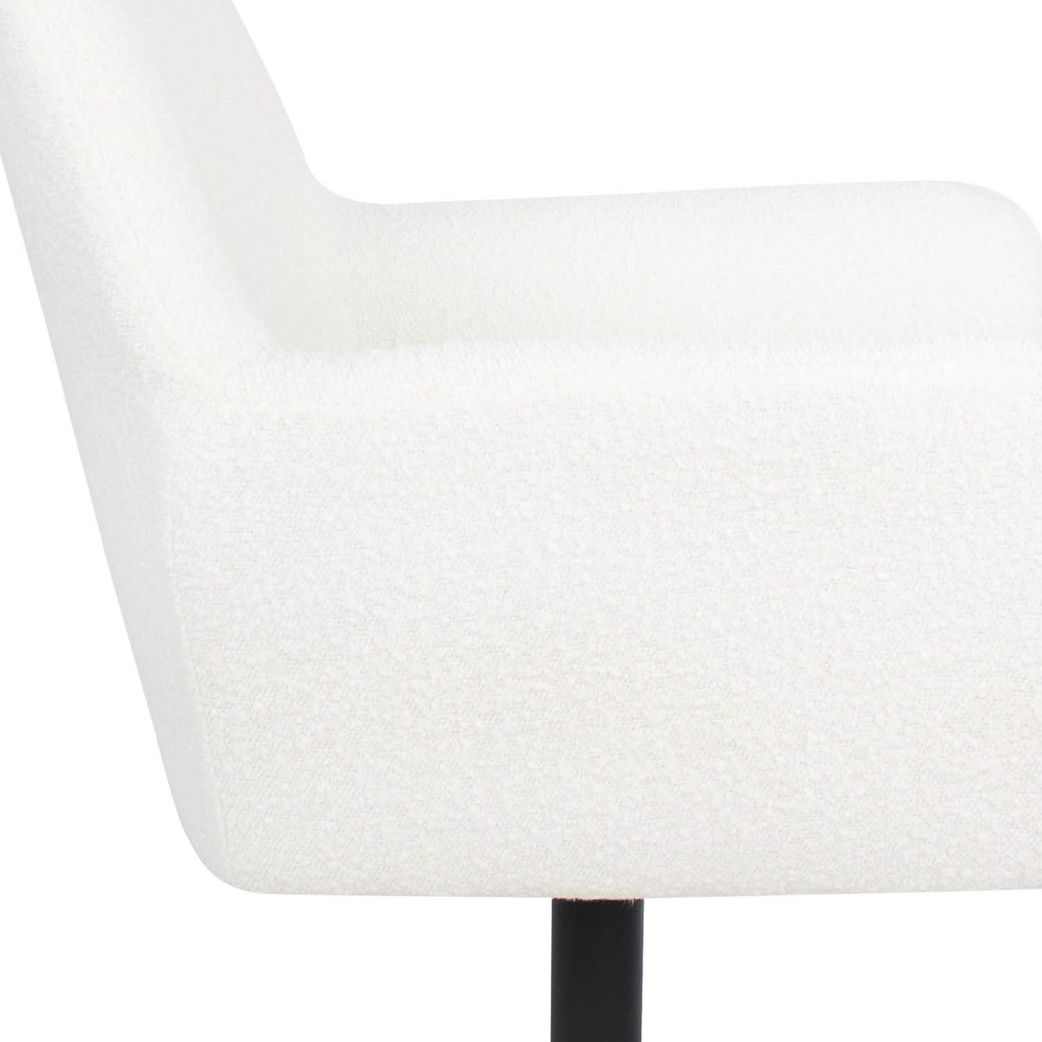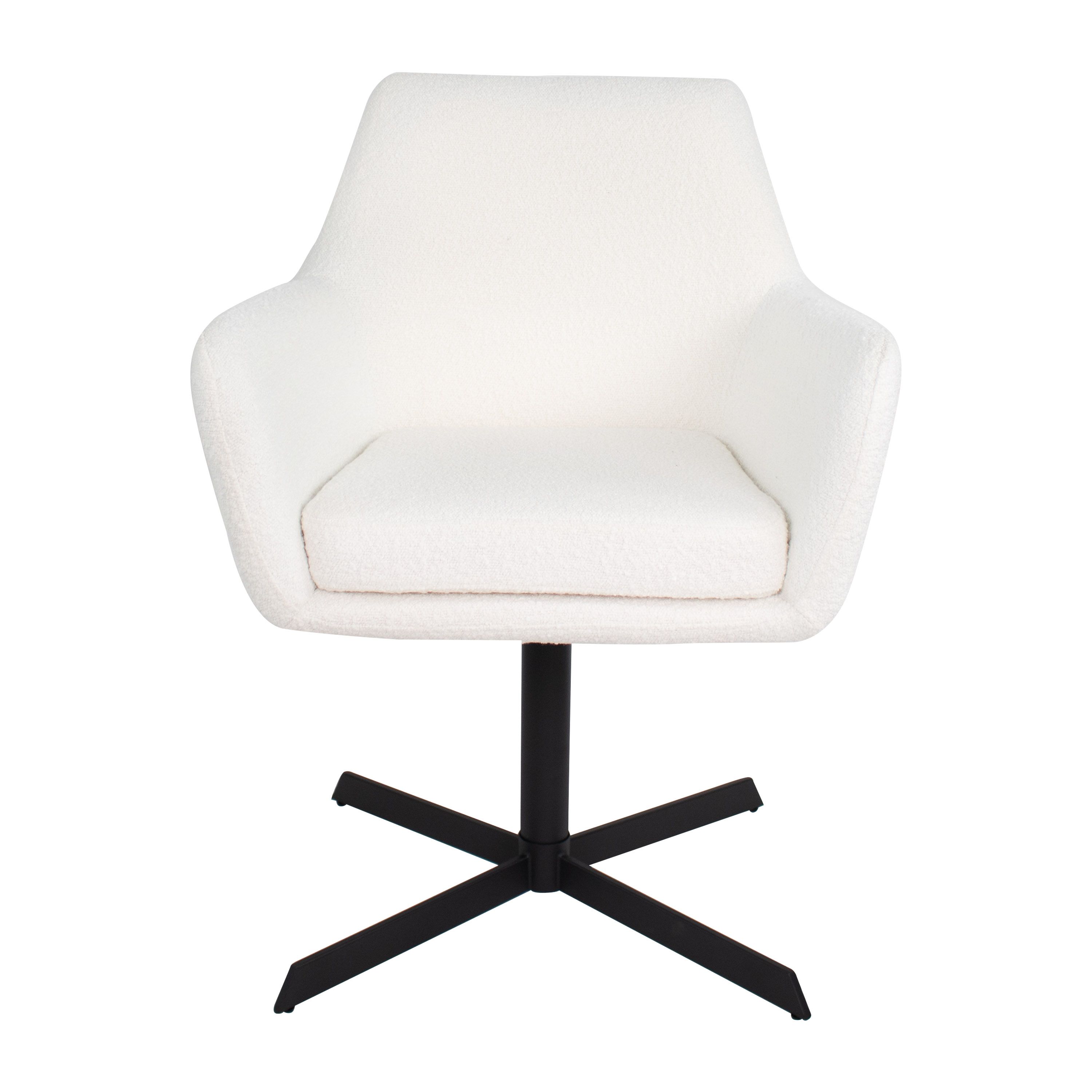 Viktor is enveloped in a soft bouclé fabric. The chair features well-positioned armrests that maximize seating comfort. The chair's striking metal frame is a feat of modern design and functionality. The frame features a 360-degree swivel mechanism, allowing you to move smoothly and easily join the dining table or have a conversation without moving the chair.