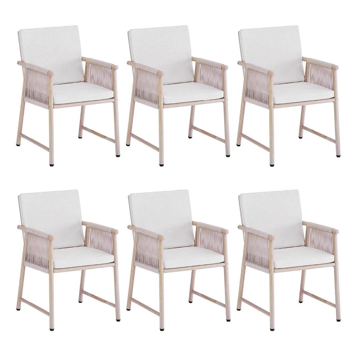 Meet garden chair Sia! The combination of the material and the design make Sia stylish and unique. The frame of the garden chair is made of metal with a wood-look finish and the back and armrests are upholstered with a very sturdy lace cord which features the ‘quick dry’ system which allows the chair to dry quickly after any rain. The chair has comfortable (removable) seat and back cushions so you can enjoy the sun, barbecue or cozy drinks extra long.